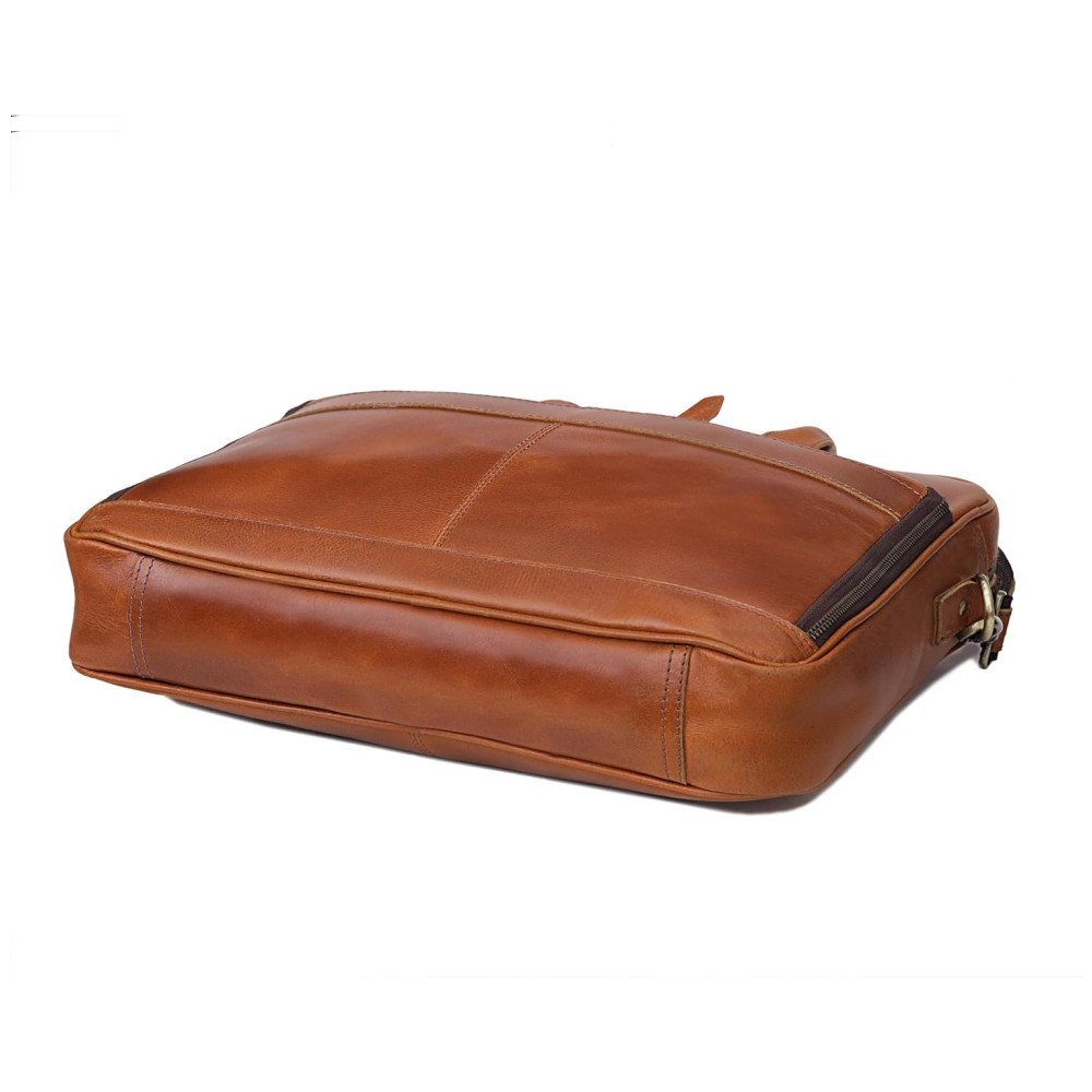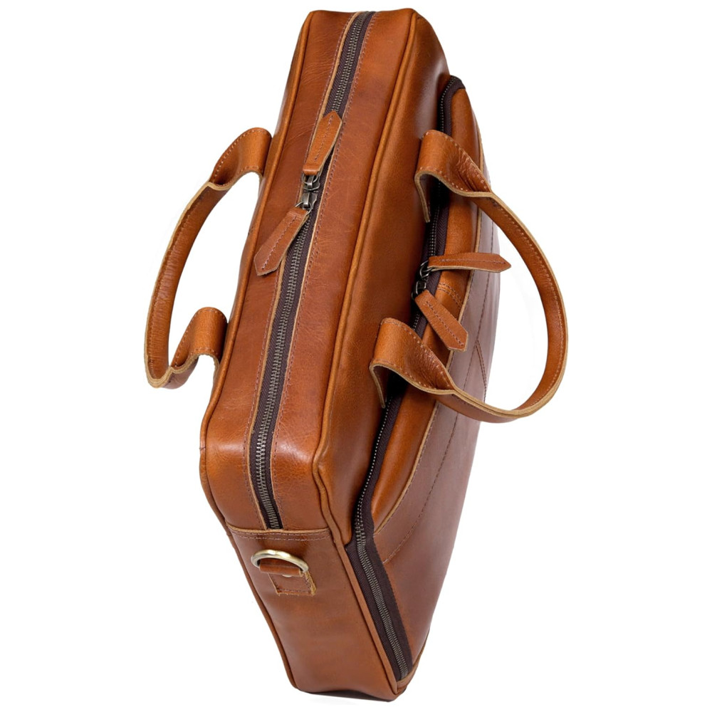 Bolsa Carteiro Masculina Couro de Búfalo para Laptop com 18 Polegadas VC VINTAGE COUTURE Marrom Claro