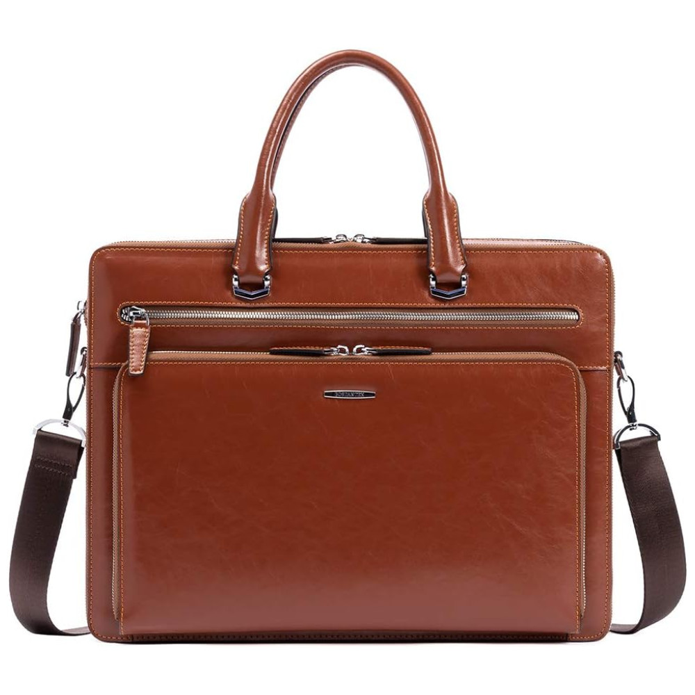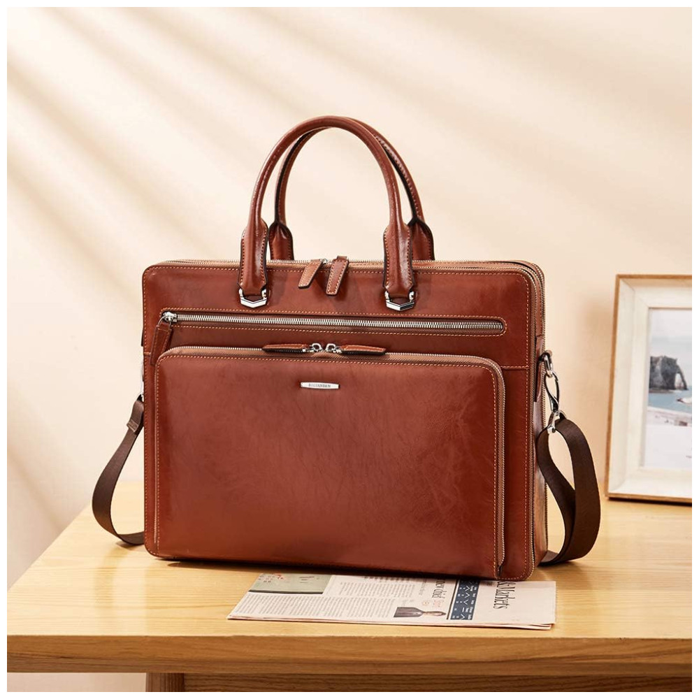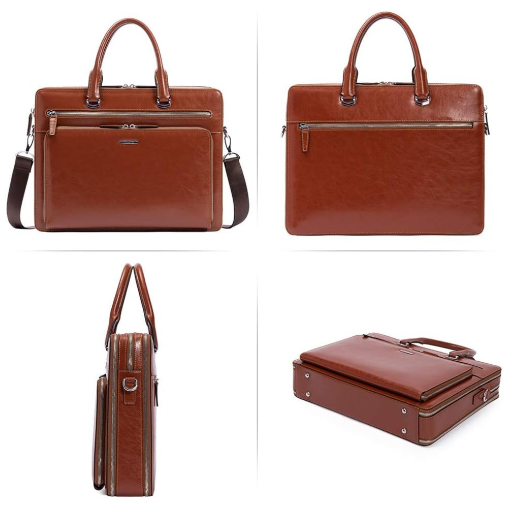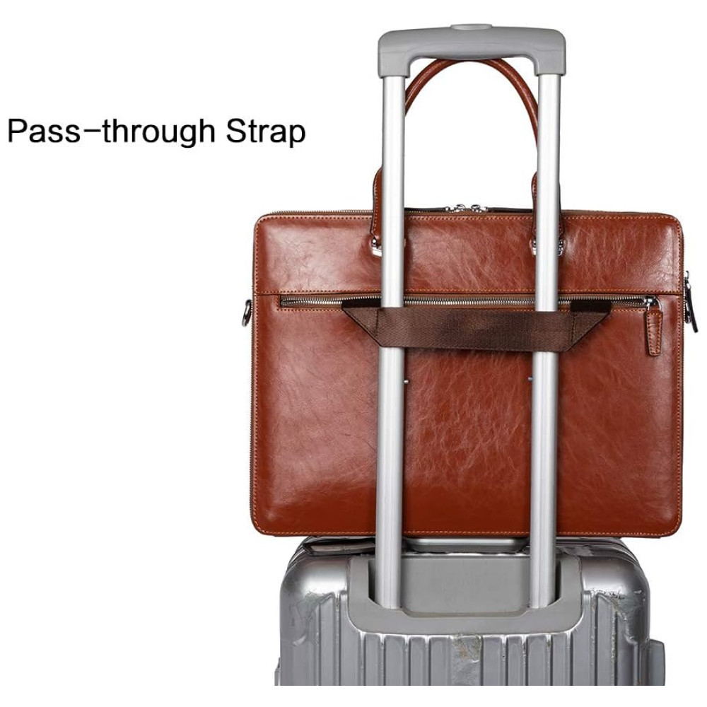 Elegante e seguro – Mantenha seu laptop bem protegido e outros itens essenciais de negócios diários elegantemente organizados na pasta de couro. Pode ser usada como pasta de advogado, pasta de médico, bolsa para laptop ou bolsa de ombro. Ele também possui uma alça de passagem oculta que pode ser combinada com a alça da sua caixa giratória. O design multifuncional é adequado para todos os homens de negócios.