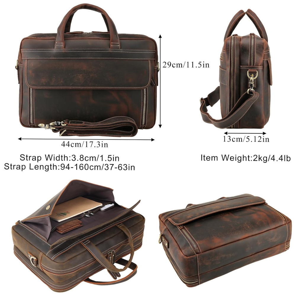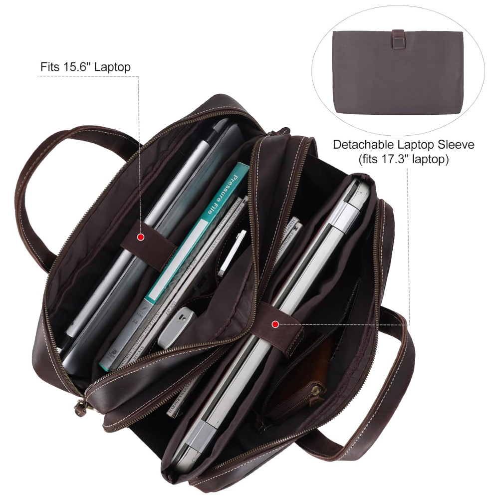Bolsa Carteiro Masculina de Couro Bovino de Flor Integral para Laptop com 17 Polegadas TIDING Marrom Escuro