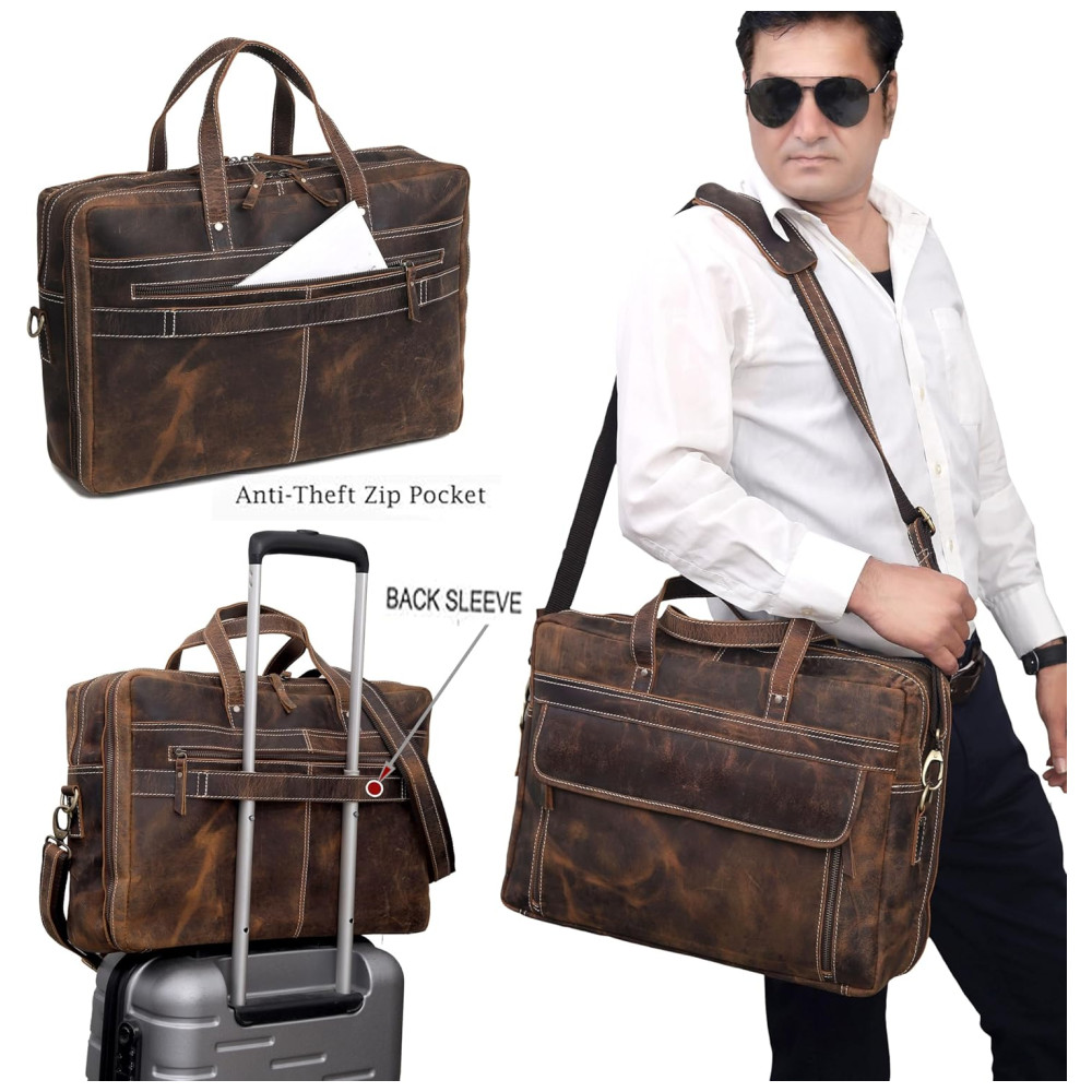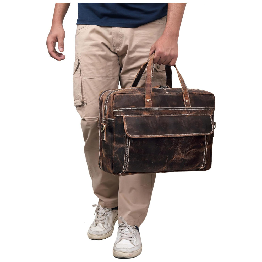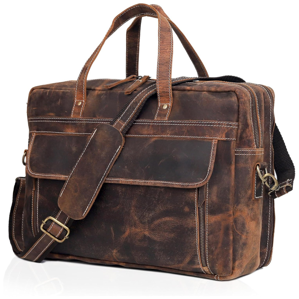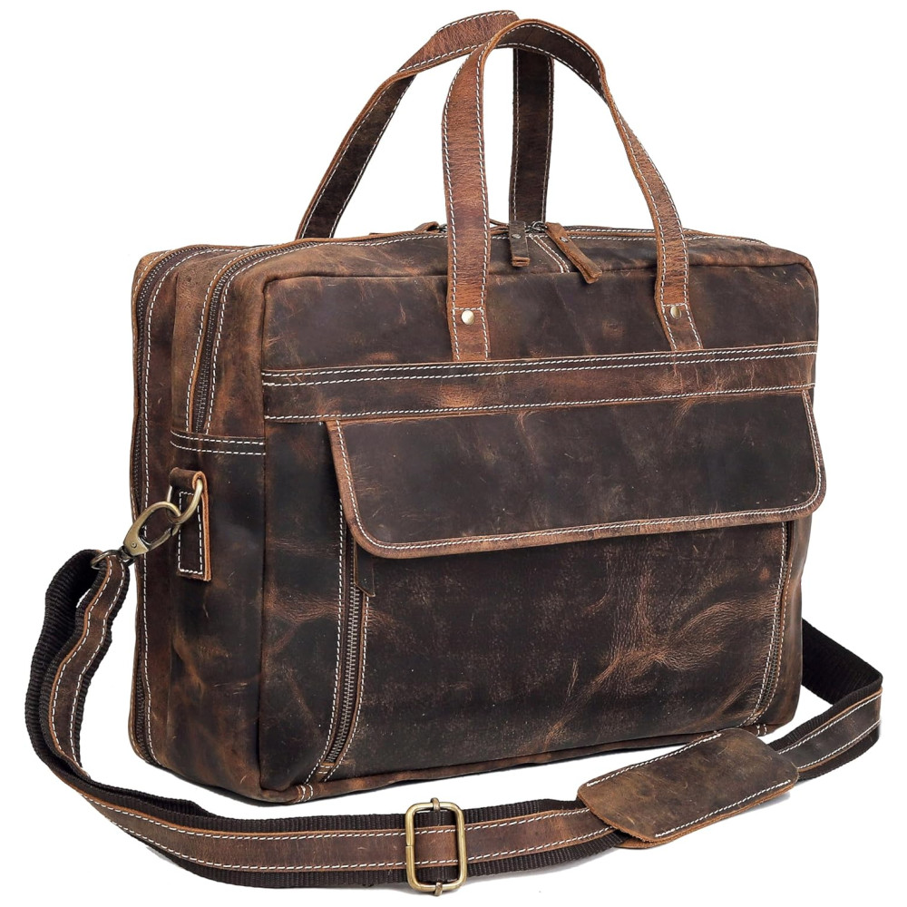 Bolsa Carteiro Masculina de Couro de Búfalo para Laptop com 17 Polegadas Cuero Marrom