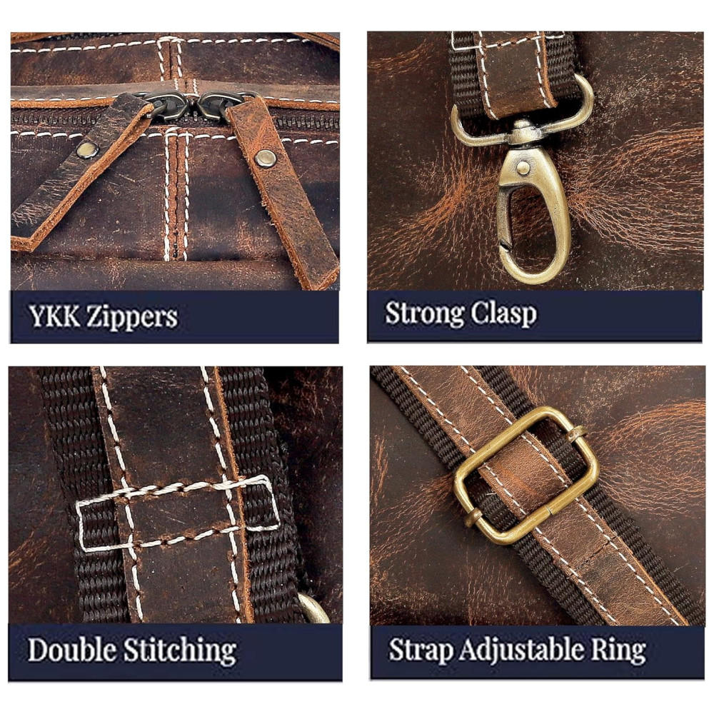 Feita com o melhor couro de búfalo Hunter e forrada com lona de alta qualidade, esta bolsa é feita à mão por artesãos que trabalham com couro há décadas.