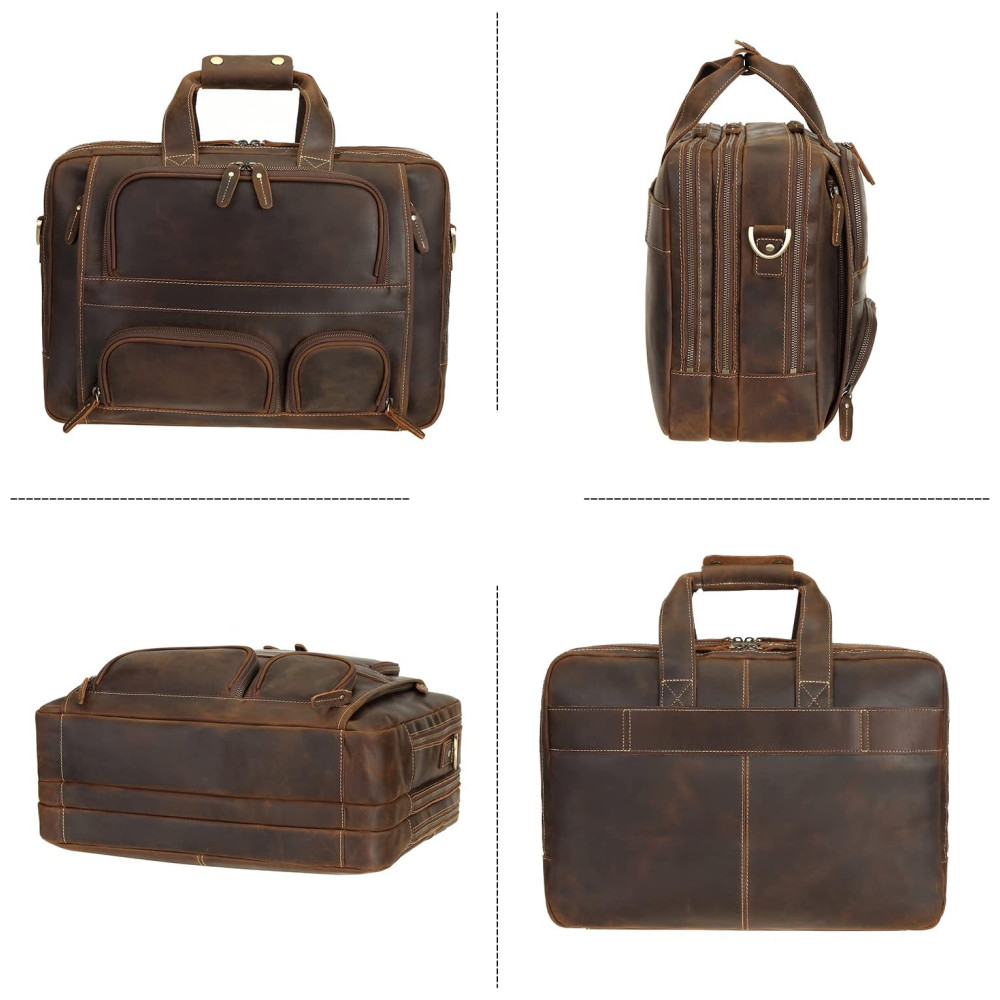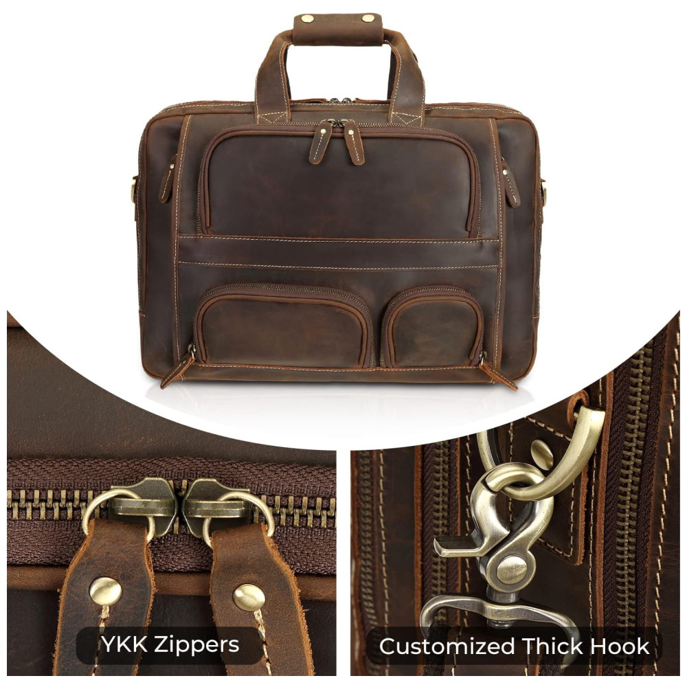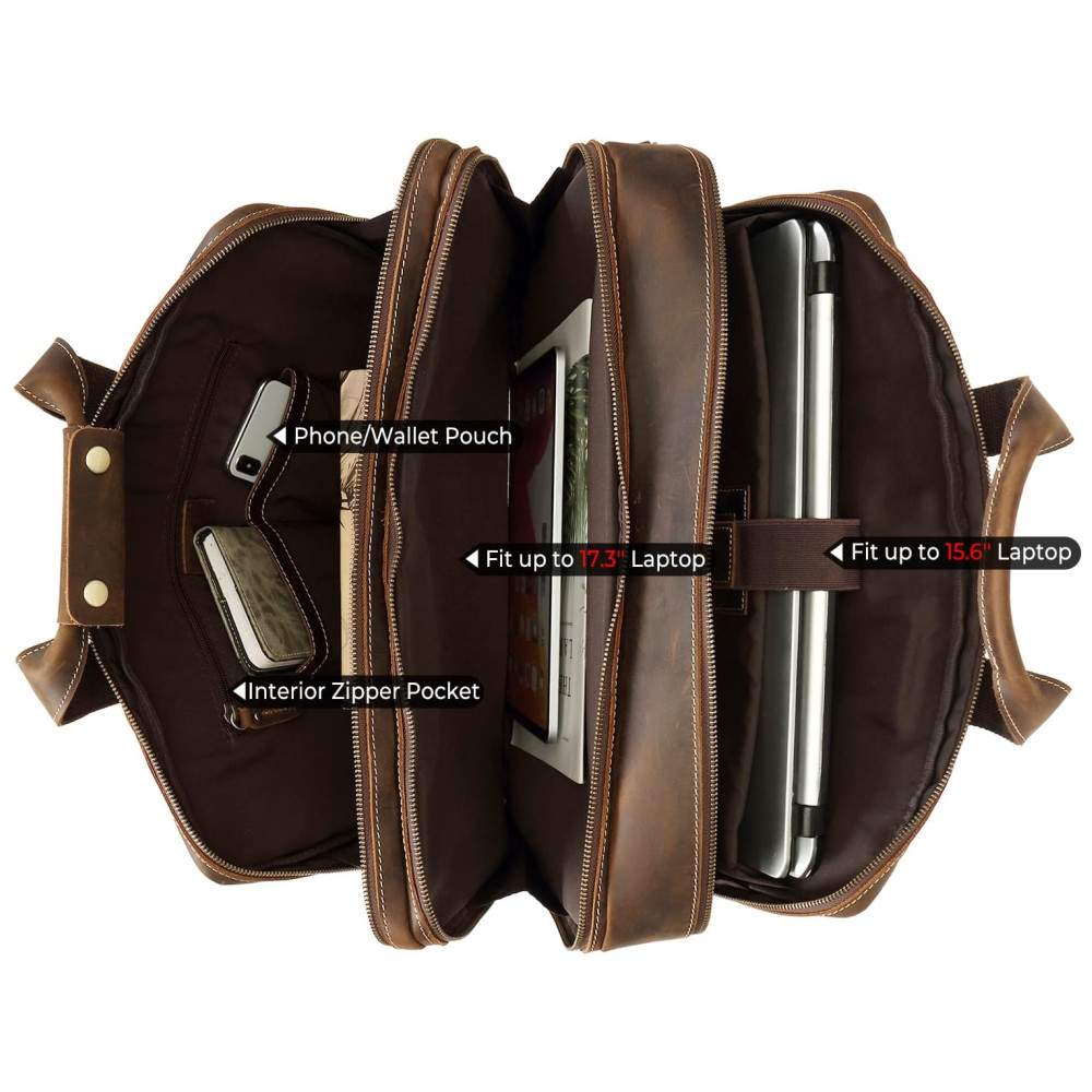 Bolsa Carteiro Masculina de Couro Genuíno para Laptop com 173 Polegadas e Fecho em Zíper Texas Marrom