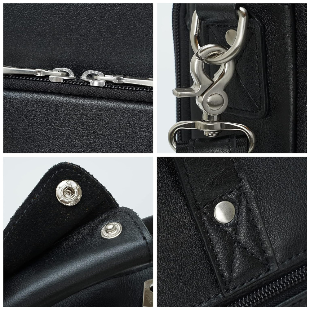 A pasta grande para laptop de 45 centímetros é feita de couro de bezerro preto, que pertence ao couro de grão integral e é conhecida como a melhor camada de couro natural. Os poros da pele dos bezerros são pequenos e finos. Assim a textura do couro de bezerro é justa, macia, lisa e também com grande flexibilidade e durabilidade. A pasta preta não mancha os coágulos.