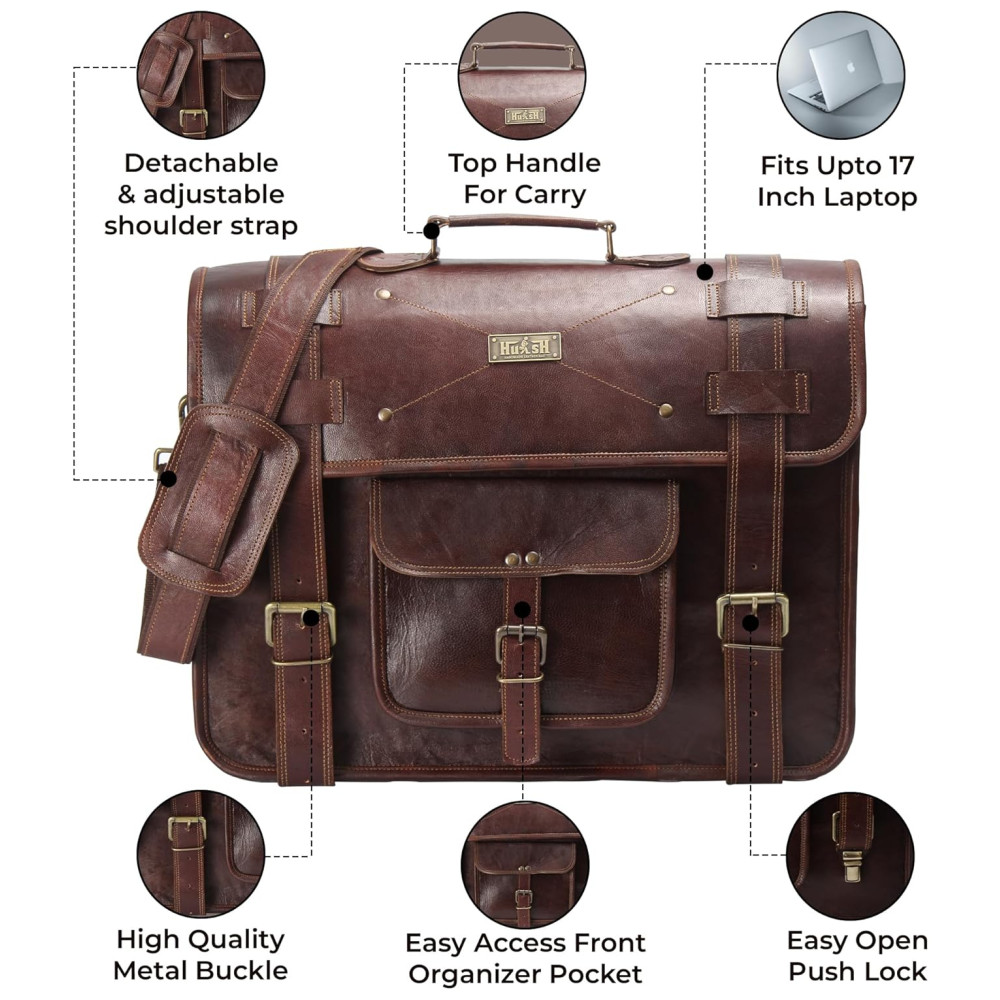 Bolsa de Couro Feita a Mão para Laptop Unissex HANDMADE WORLD HW FDM18inch Marrom