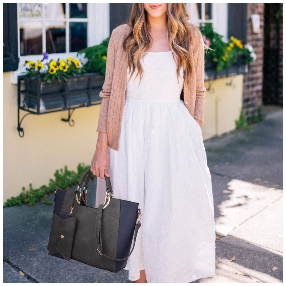 Bolsa de Mão Feminina em Dois Tons e DASEIN XL 11 6949 1 GY NY Cinza escuro