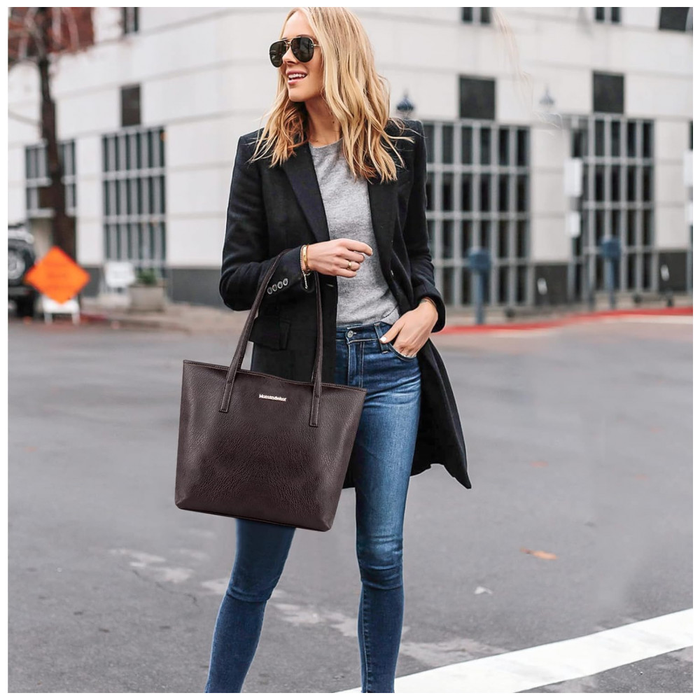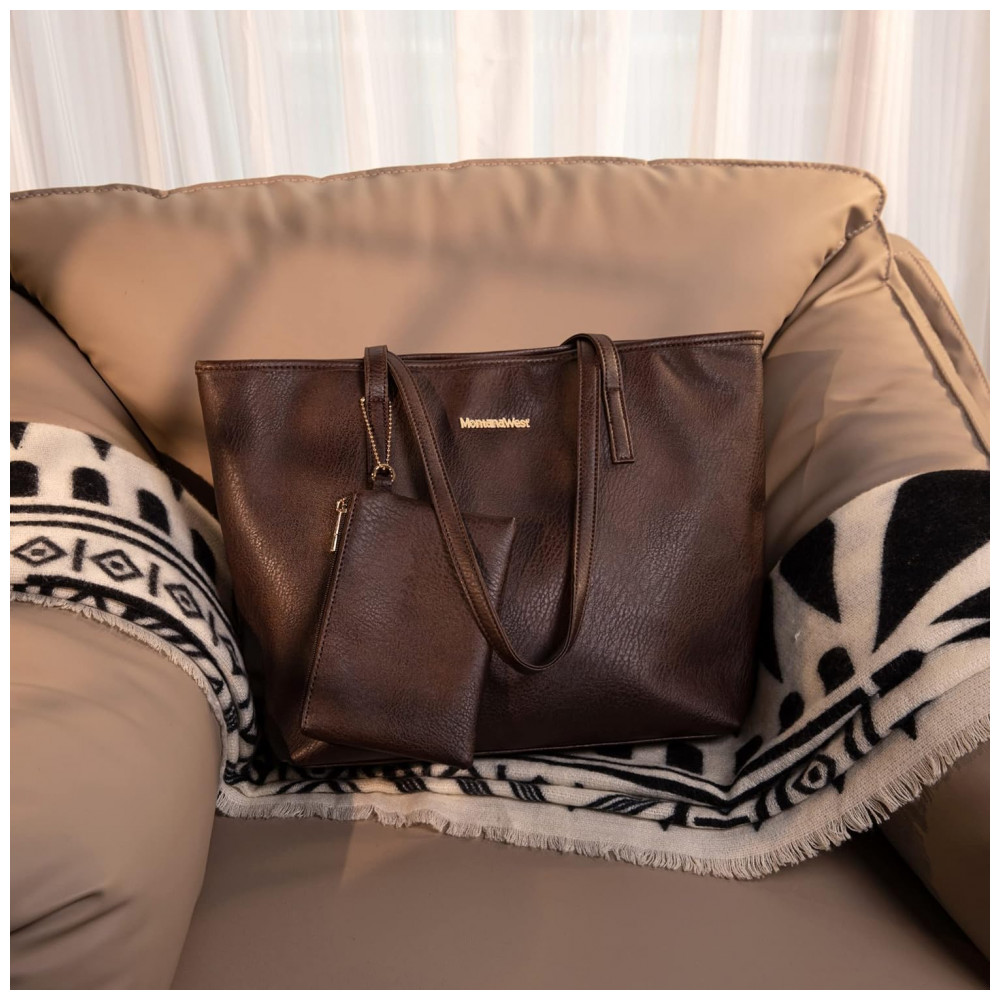 MATERIAL Feito de couro PU macio amanteigado aparência envelhecida leve com forro de tecido macio. Esta bolsa clássica é a bolsa sem esforço que você vai querer ter e confiar pelo resto do tempo. É simples, mas elegante e espaçoso o suficiente para carregar seu laptop ou iPad.
