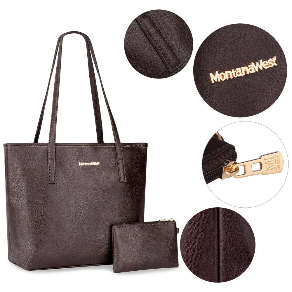 Bolsa de Ombro Feminina em Couro Sintético com Carteira Montana Marrom Escuro