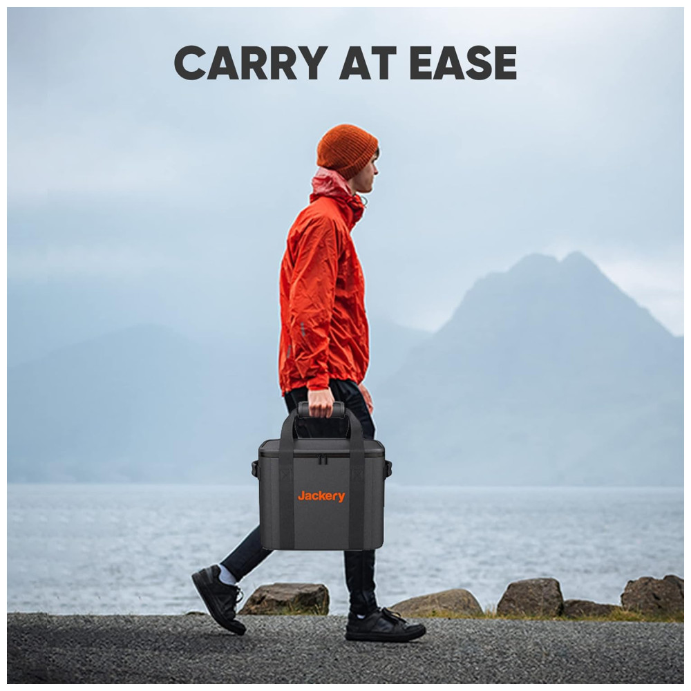 A Jackery é uma empresa especializada em fornecer soluções de energia verde para atividades ao ar livre. A estação de energia portátil Jackery Explorer 1000 1000 Pro é uma excelente opção para carregar dispositivos como telefone, laptop e drone durante suas viagens. Para proteger a estação de energia contra arranhões, apertos e sujeira, a Jackery desenvolveu uma bolsa EVA Premium projetada especificamente para caber na estação de energia. Com dimensões de 37.5 x 30 x 34.5 cm , a bolsa de transporte é resistente e durável, com zíper para facilitar o transporte. É a escolha ideal para exploradores que desejam uma solução portátil e confiável para suas necessidades de energia.