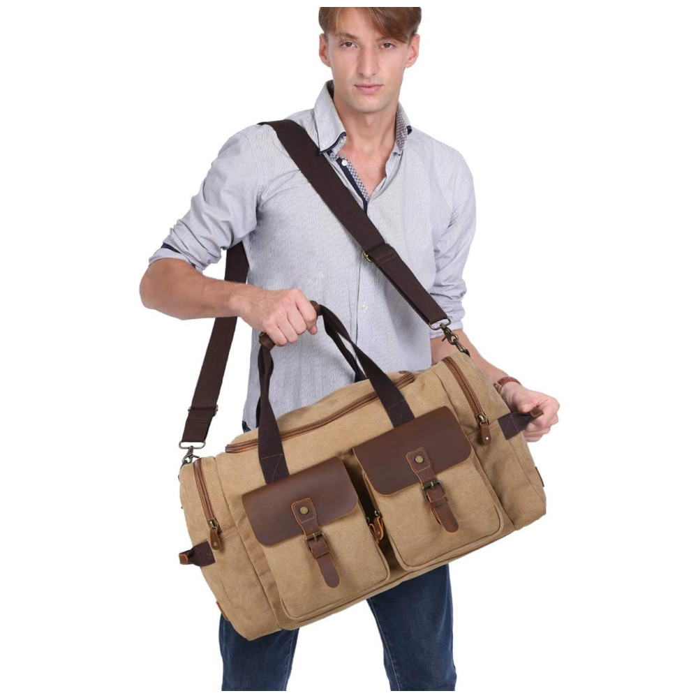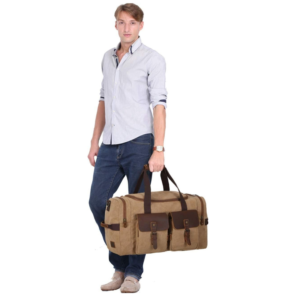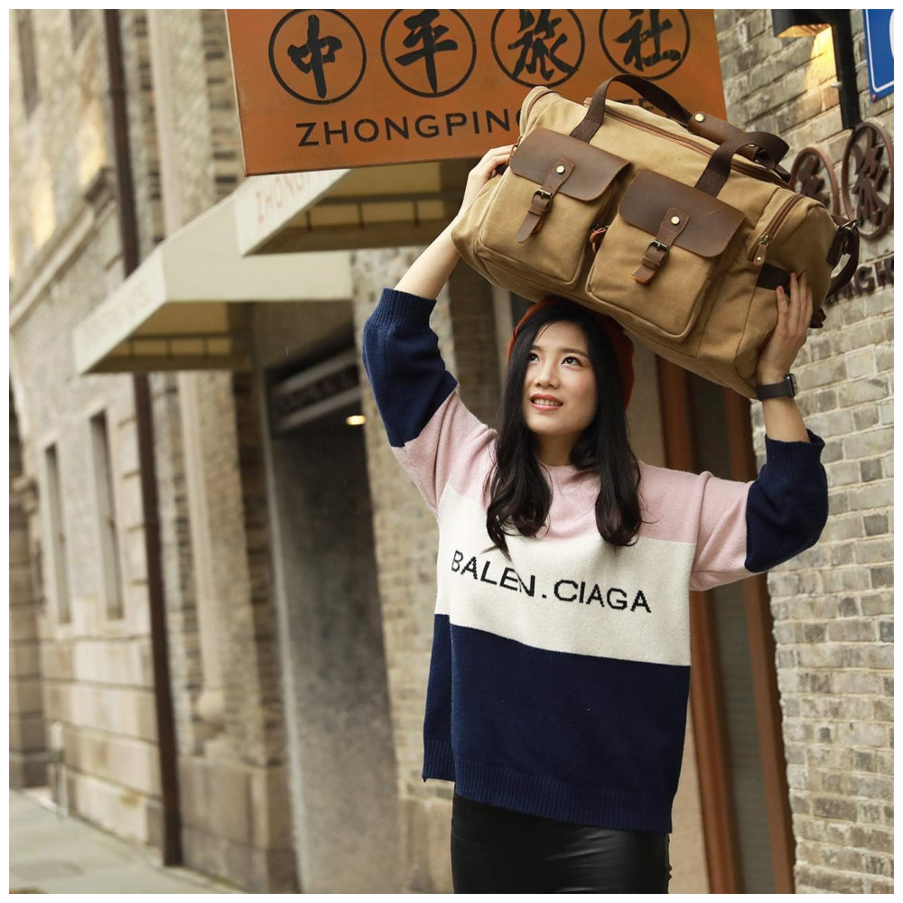 Nossa bolsa de fim de semana elegante e prática tem muitos estilos de mão. Bolsa de bagagem. As alças de lona são embrulhadas em couro macio, tornando a fácil de agarrar e transportar confortavelmente. Bolsa de ombro com a alça é ajustável e removível, portanto, carregá la no ombro é mais conveniente de usar. As alças laterais são úteis quando os materiais pesados estão totalmente ajustados, por isso são necessárias duas pessoas para transportar e compartilhar o peso de sustentação
