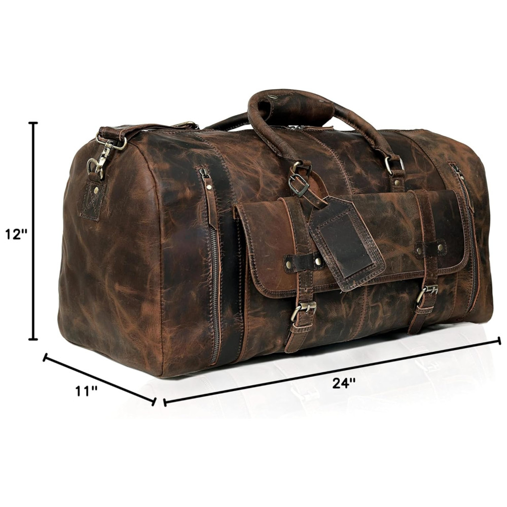 Alça de ombro destacável. Dimensões aproximadas 24 C x 12 A x 10 , 60 x 30 x Profundidade em polegadas aprovado pela maioria das Major Airlines como mala de cabine. Pregos de metal na base protegem o couro.