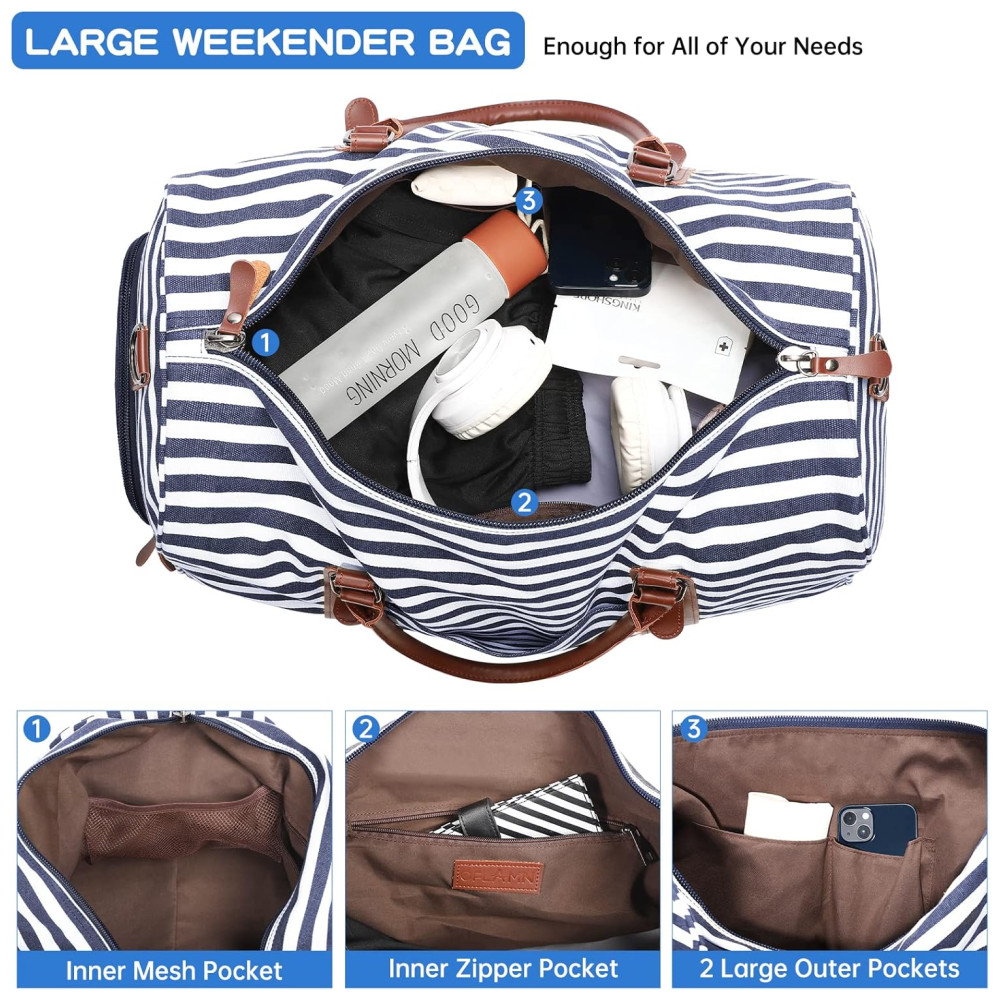 Bolsa de Viagem de Lona com Necessaire e Branca OFLAMN Azul