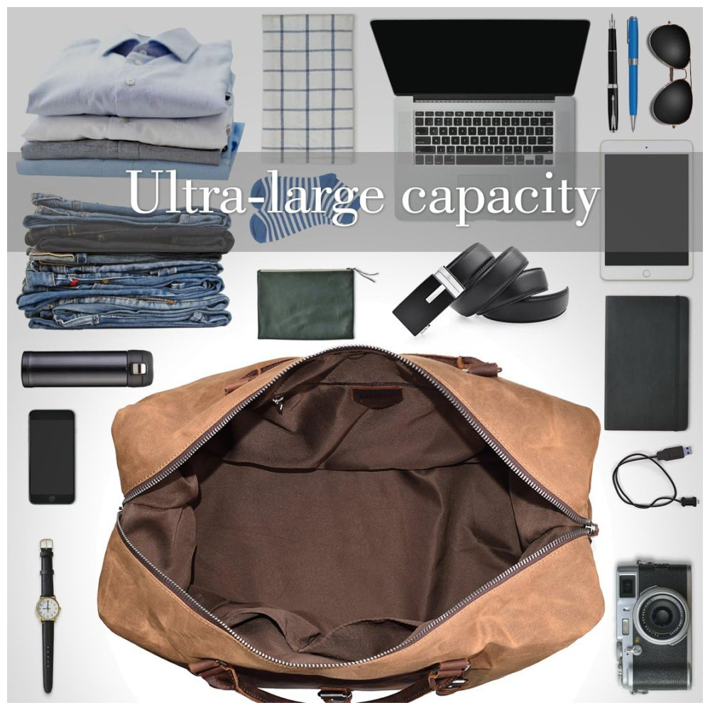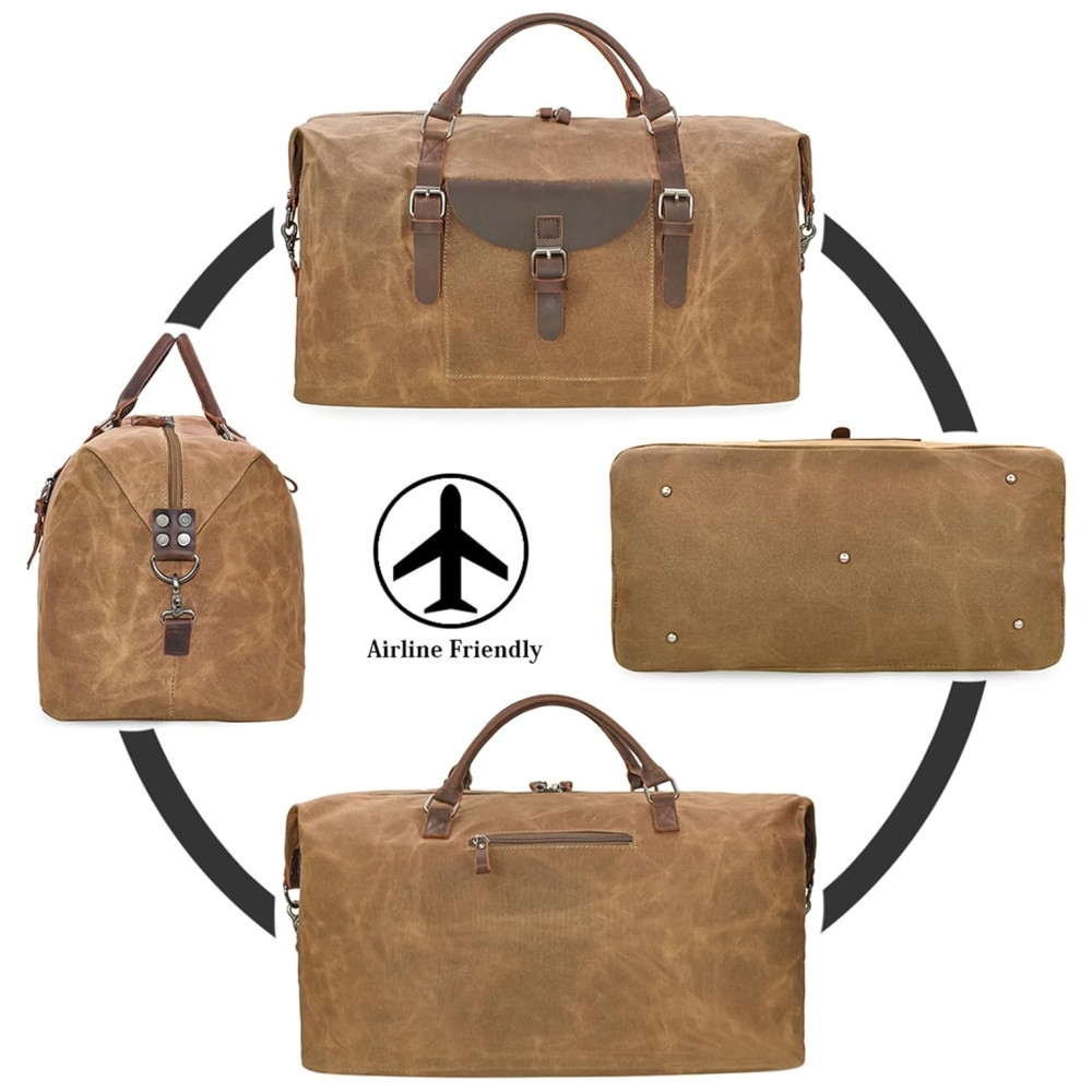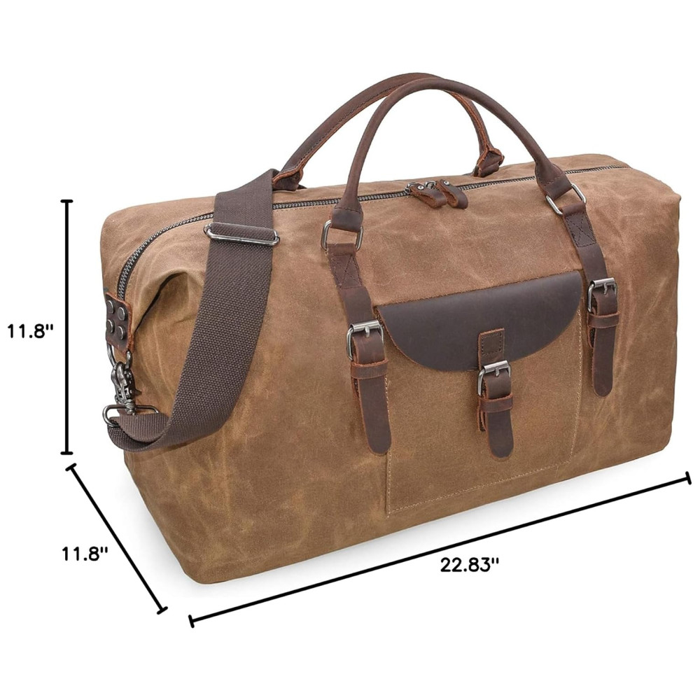Bolsa de lona grande Você ficará surpreso com o tamanho desta bolsa de viagem. O grande compartimento principal e vários bolsos internos são perfeitos para roupas e necessidades de viagem. Adequado para 3 4 dias de semana ou viagem de negócios, pode ser como bagagem de mão bolsa de vôo.