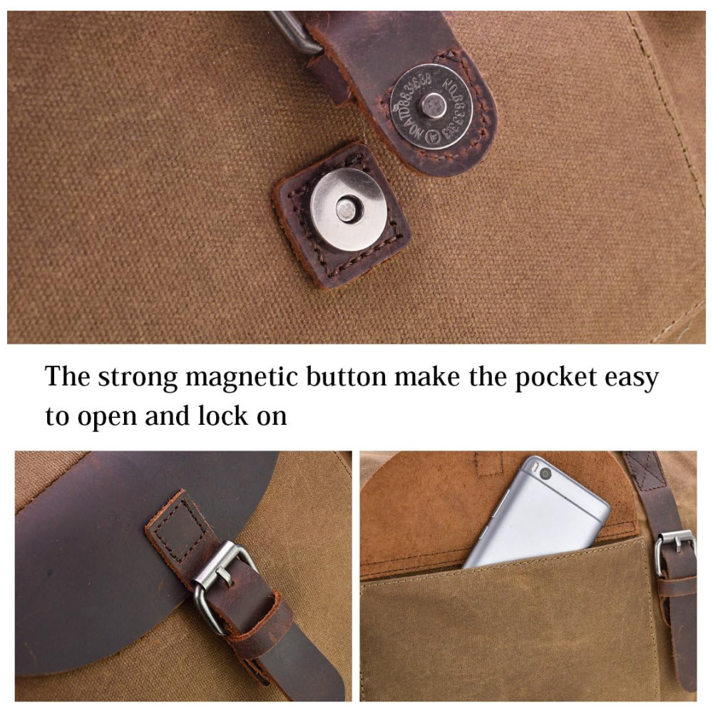 Material de qualidade premium Esta mochila é feita de couro de cavalo louco de alta qualidade e lona durável à prova dágua, rebites inferiores. A qualidade premium garante a durabilidade de longa duração. A lona de alta densidade não rasga ou rasga quando você coloca muito E o hardware de liga de zinco sólido de qualidade não acumula ferrugem facilmente.