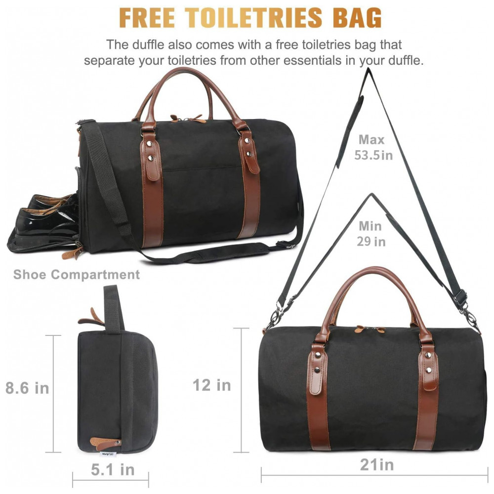 Uma bolsa de viagem de grande porte que pode acomodar de 2 a 4 dias com itens essenciais diários, como roupas, sapatos, copos e dispositivos eletrônicos. O compartimento principal também vem com um bolso com zíper interno e 2 bolsos externos grandes para guardar seu smartphone, identidade ou passaporte.