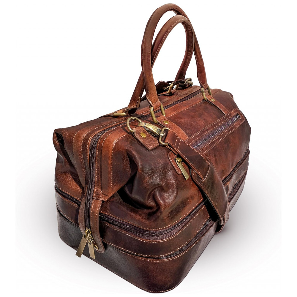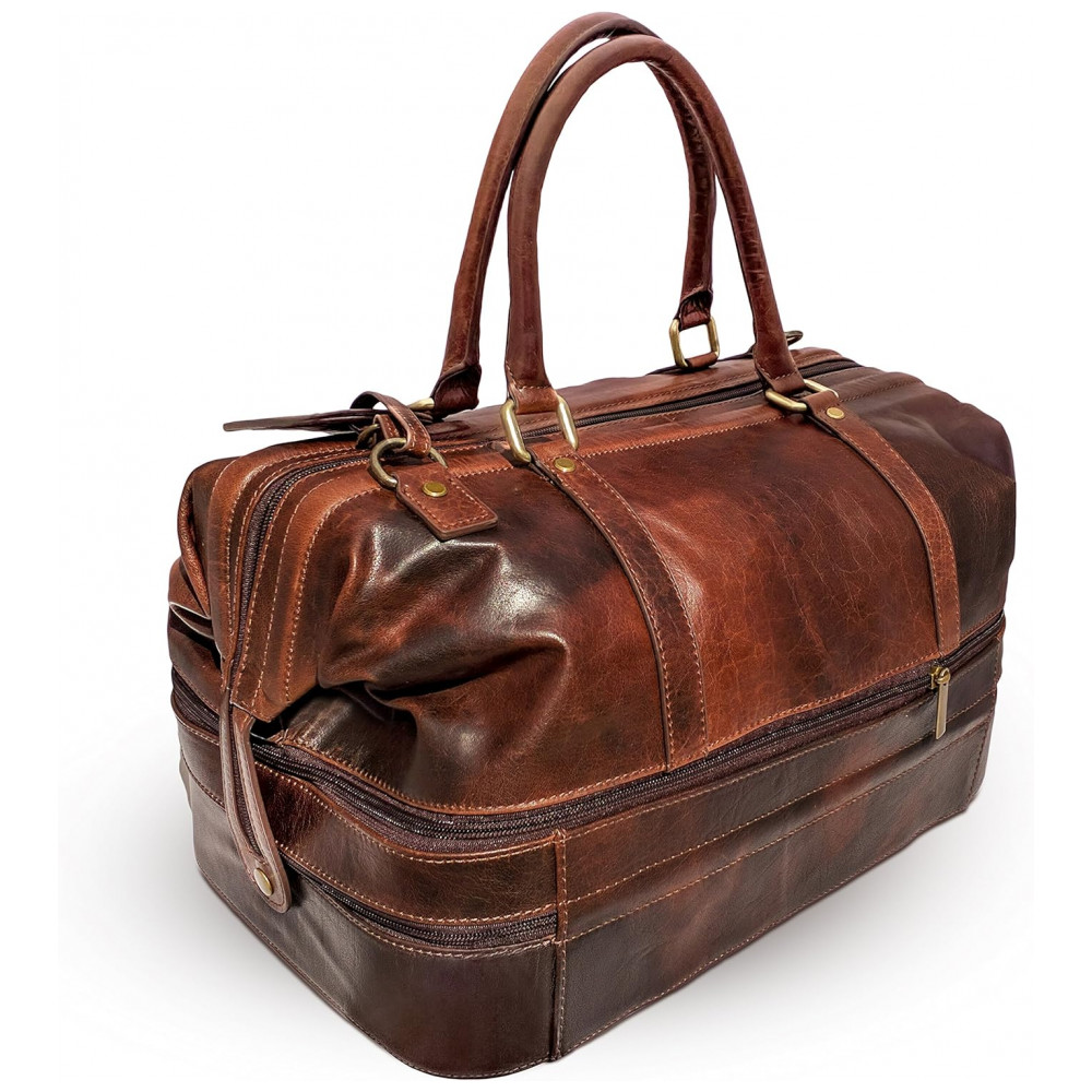 Bolsa de Viagem Masculina Clássica de Couro GENT SUPPLY CO. Marrom