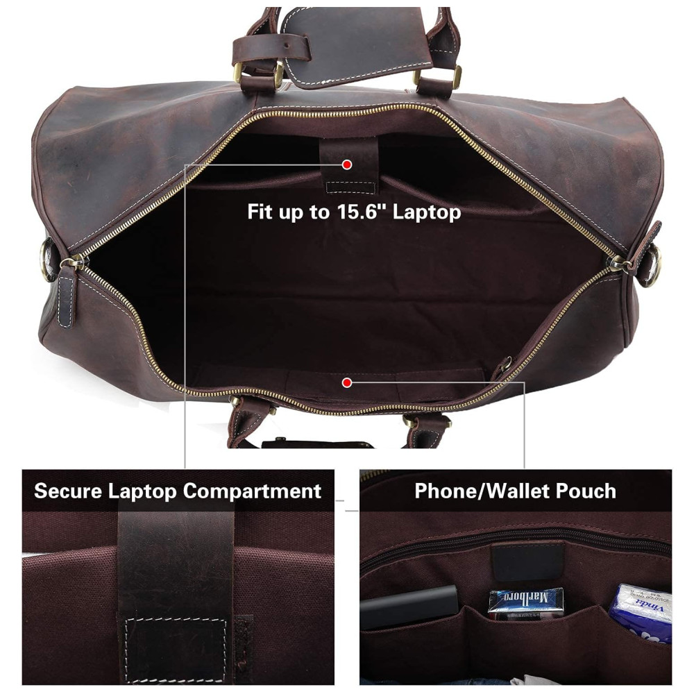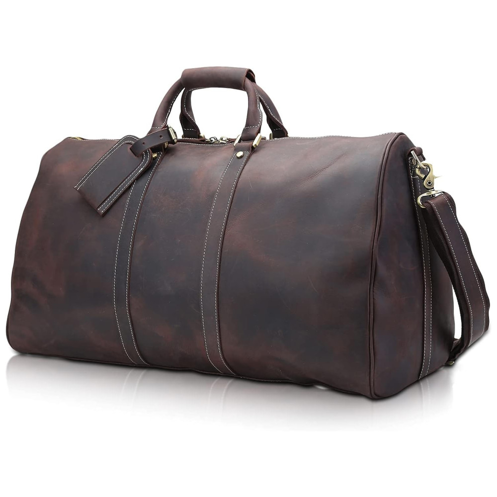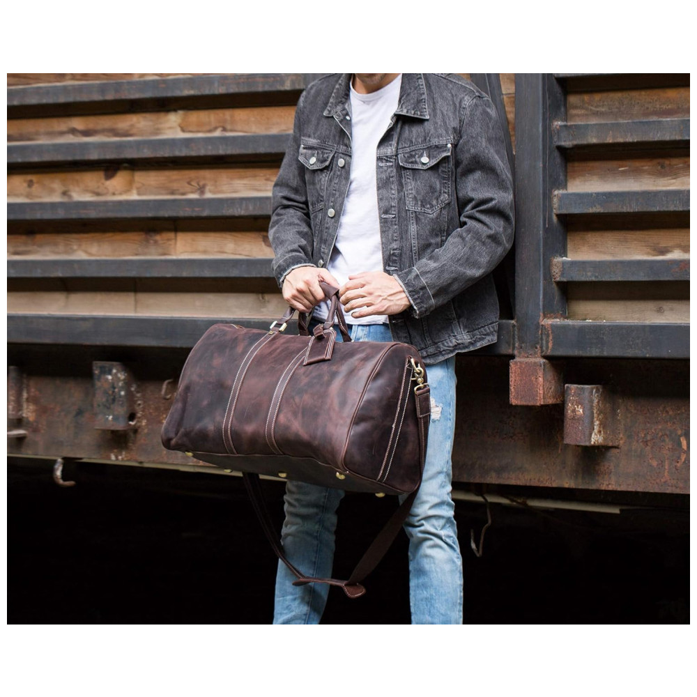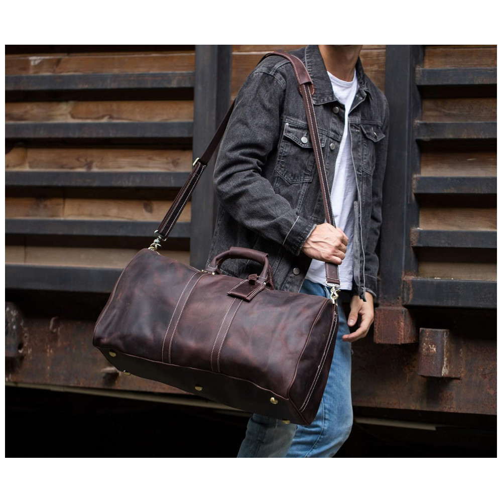Bolsa de Viagem Masculina Clássica de Couro POLARE 10464499 Marrom Escuro