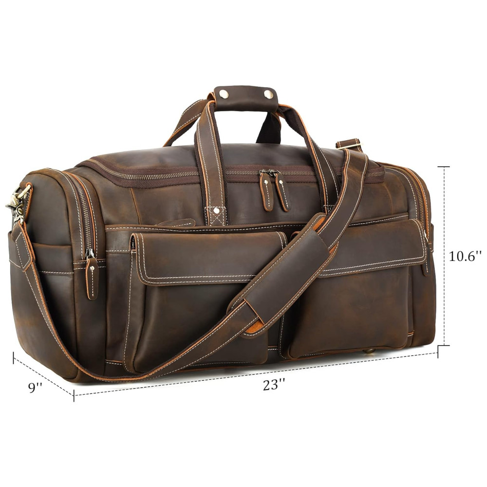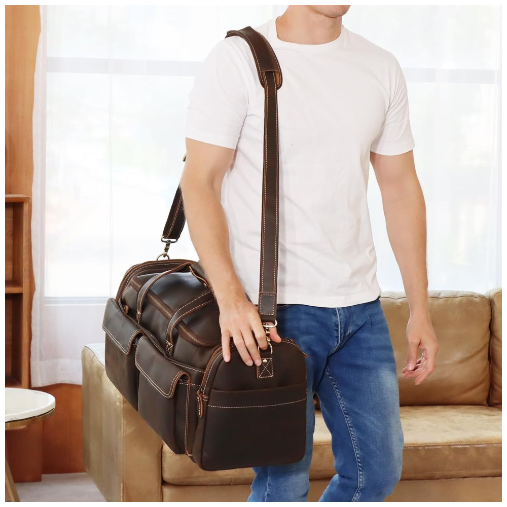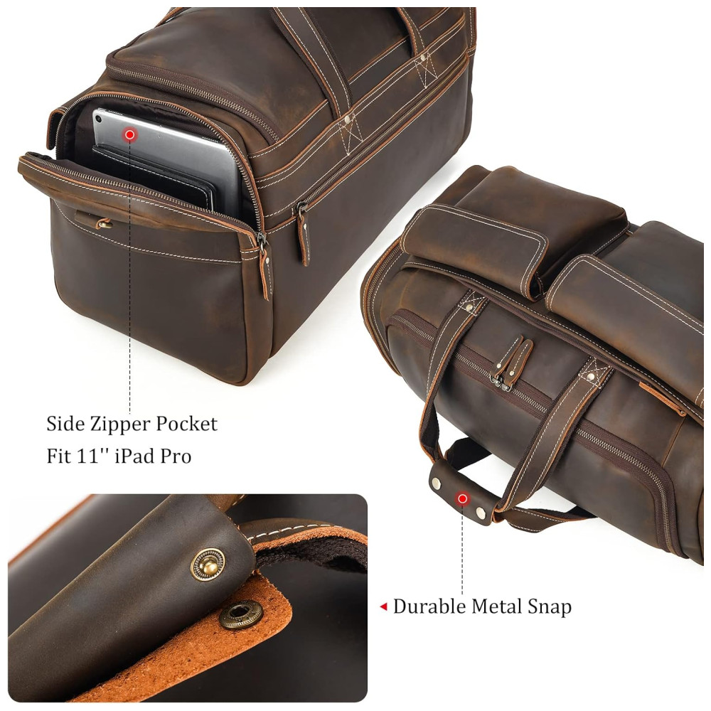 Material de alta qualidade Feito de couro italiano Full Grain espesso e luxuoso com zíperes YKK, que fica melhor conforme envelhece com o tempo, o couro vai amolecer e desenvolver uma bela pátina.