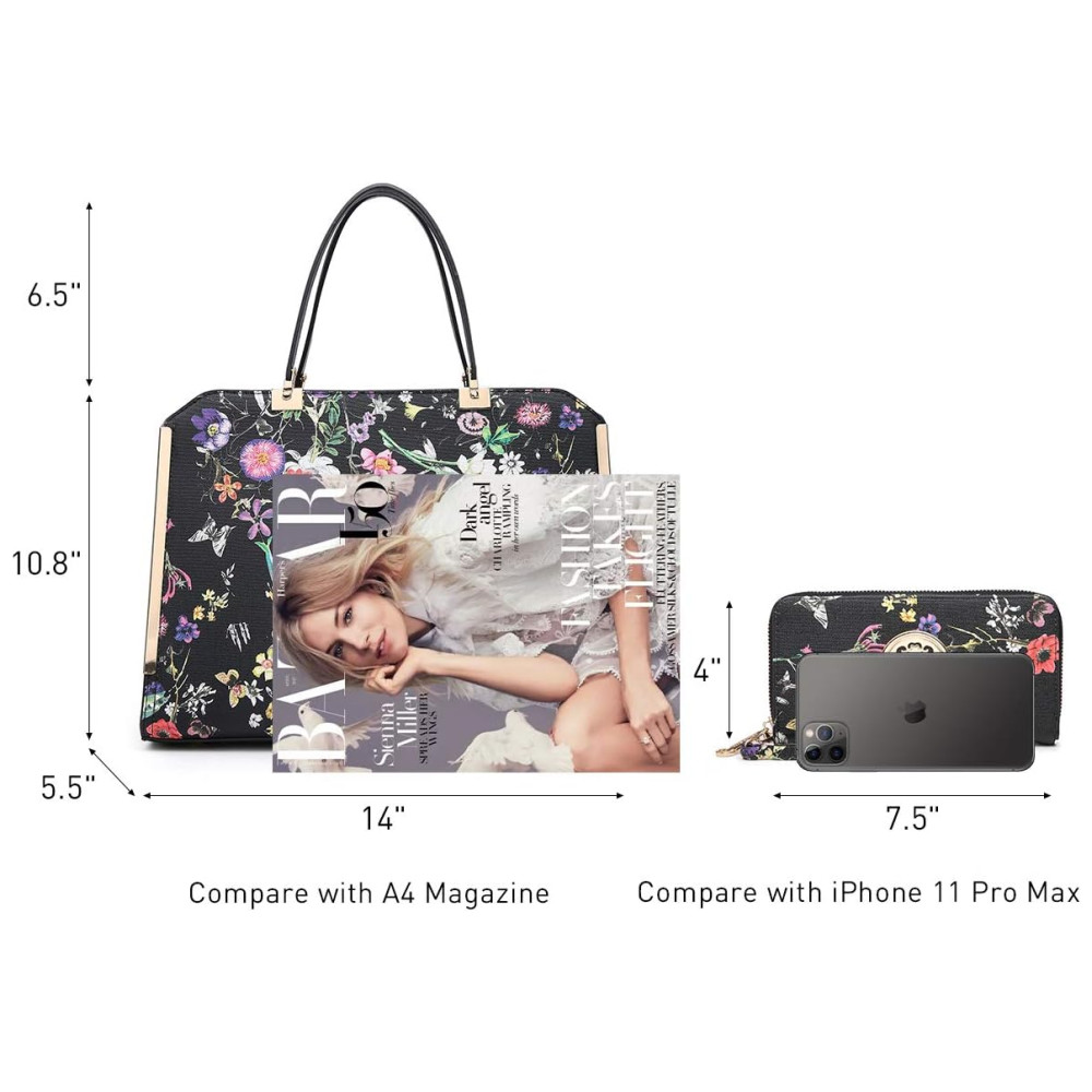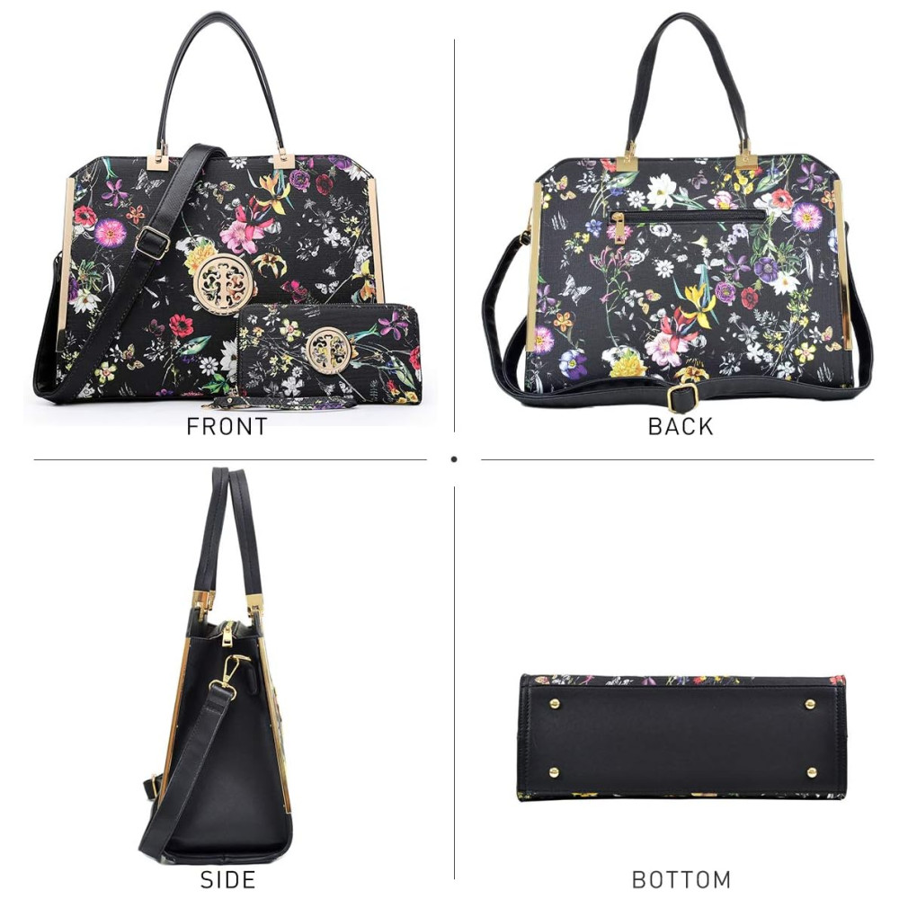 Bolsa Feminina de Ombro com Carteira Florida 2 Unidades DASEIN KC XL 12 6900 168 BKF Preto