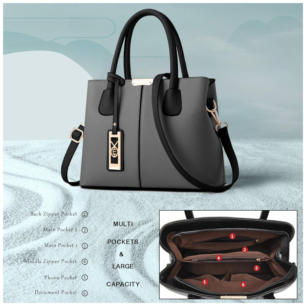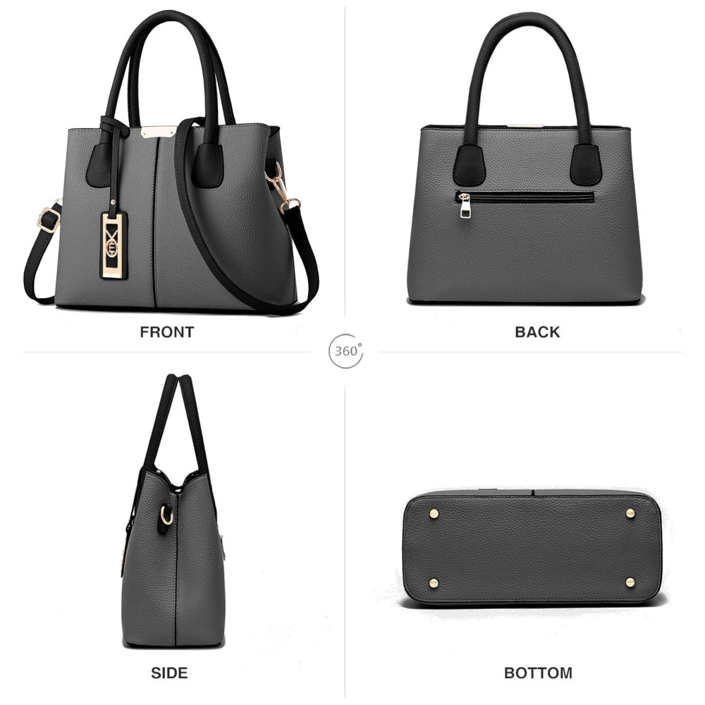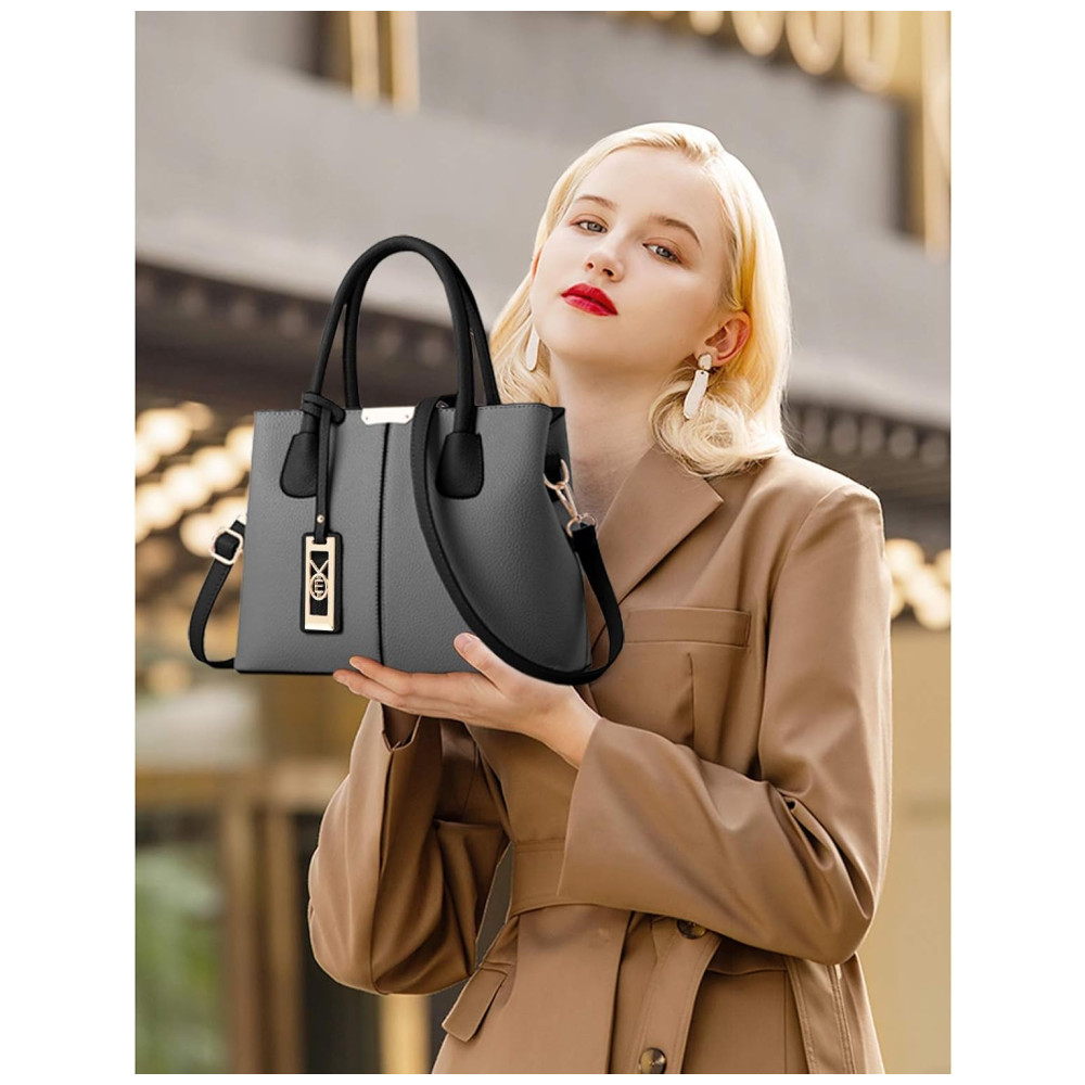 Bolsa Feminina de Ombro em Couro Sintético COCIFER XMQB888 Grey Black Cinza