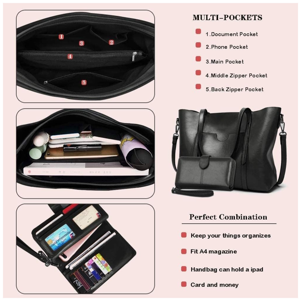 ALTA CAPACIDADE As bolsas femininas têm seis bolsos, incluindo dois bolsos principais, um bolso auxiliar, um bolso em camadas, um bolso com zíper, um bolso para telefone e um bolso para identificação. Pode acomodar confortavelmente Macbook ou iPad, revistas, livros , e etc.