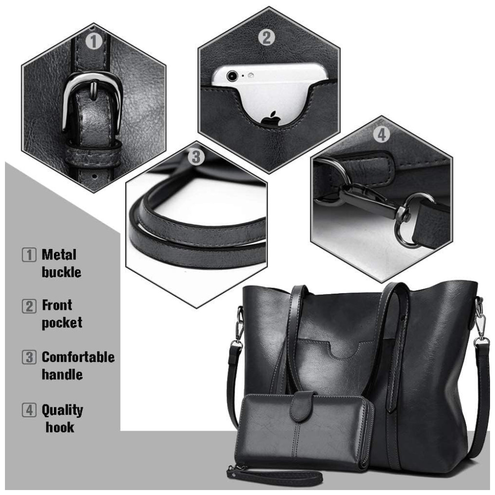MATERIAL SUPERIOR A sacola para mulheres é feita de couro PU de alta qualidade e forro de poliéster, que é moderno e durável. As bolsas e bolsas são bem feitas com suturas e confortáveis ao toque, são altamente resistentes a arranhões e rasgos, e não se deformam facilmente.