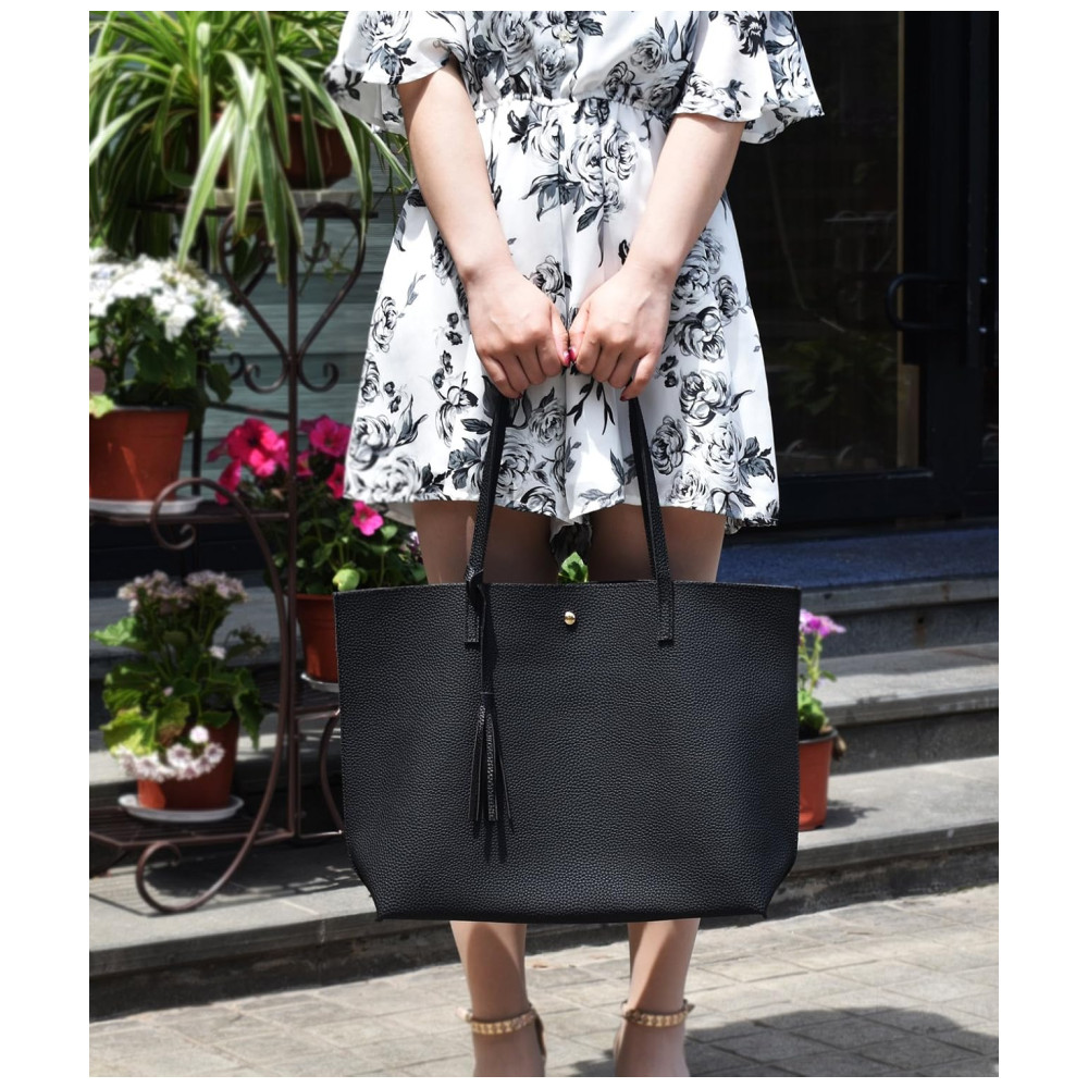 Bolsa Feminina de Ombro em Couro Sintético com Grande Capacidade DREUBEA WB 009 B Preto