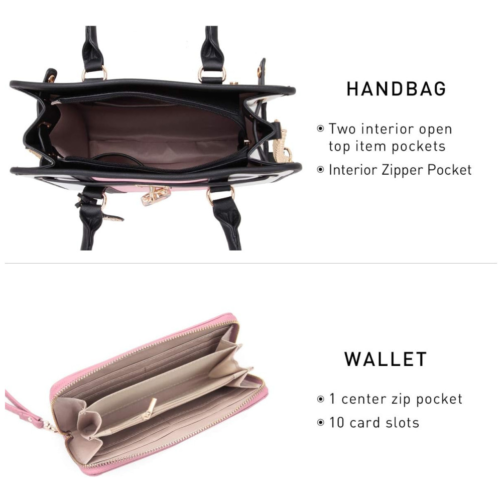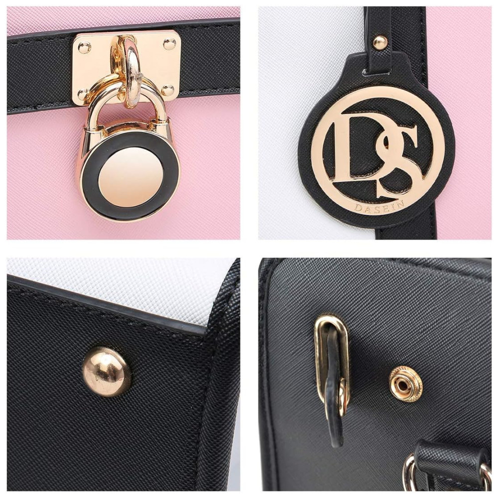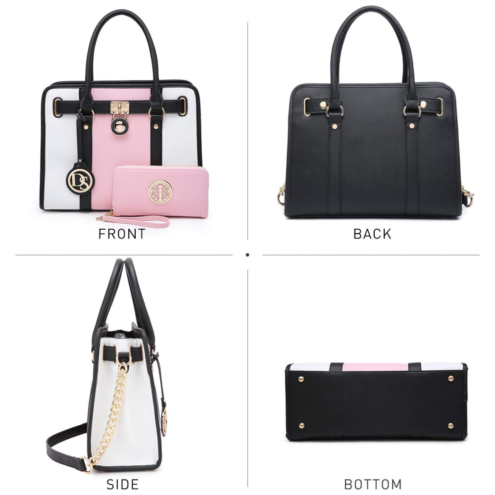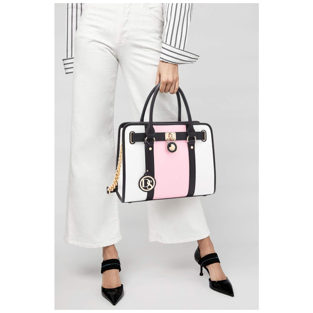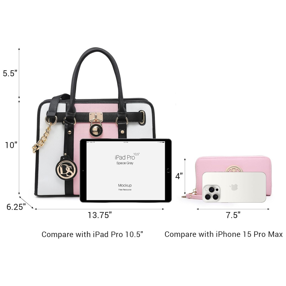 Bolsa Feminina em Dois Tons com Alça Superior e Carteira Branca e DASEIN KC XL 02 7103 W PK WT FN FBA Rosa claro