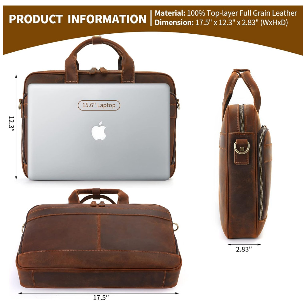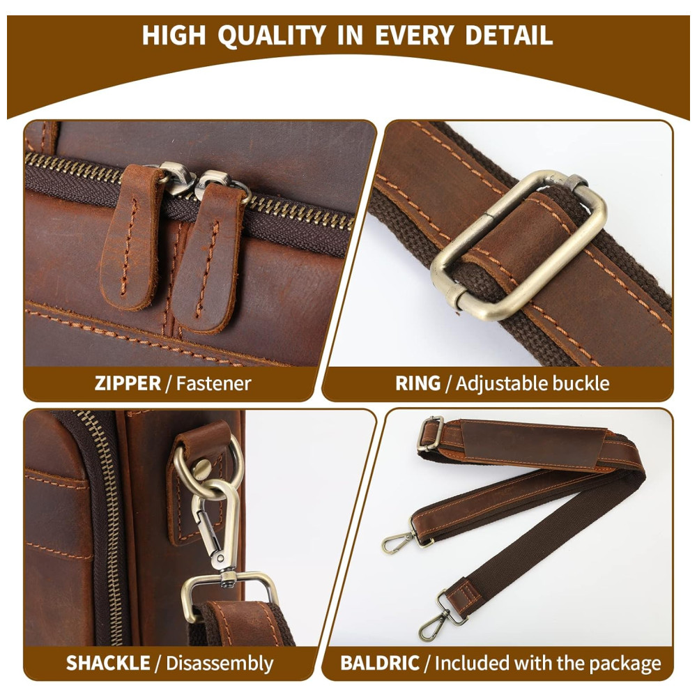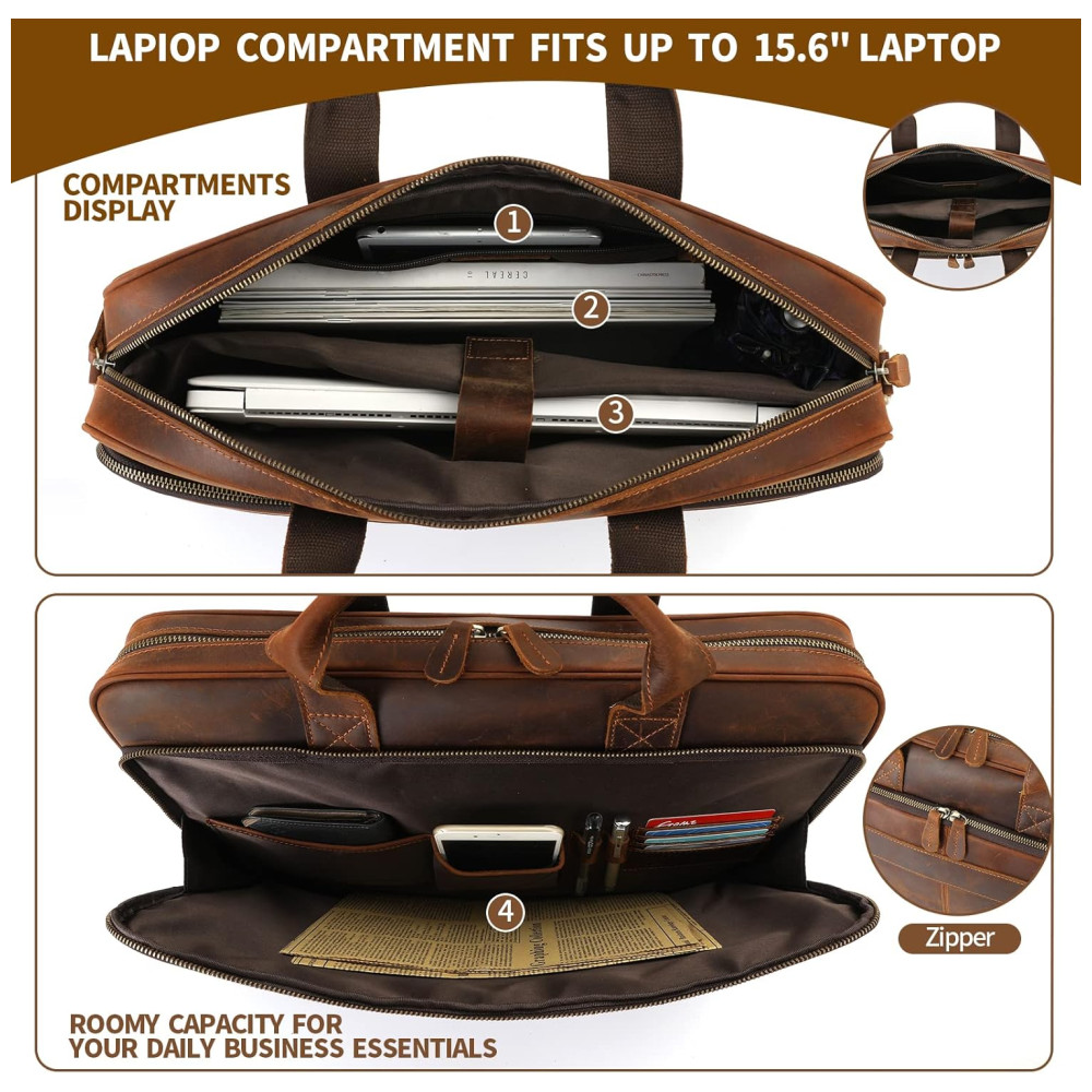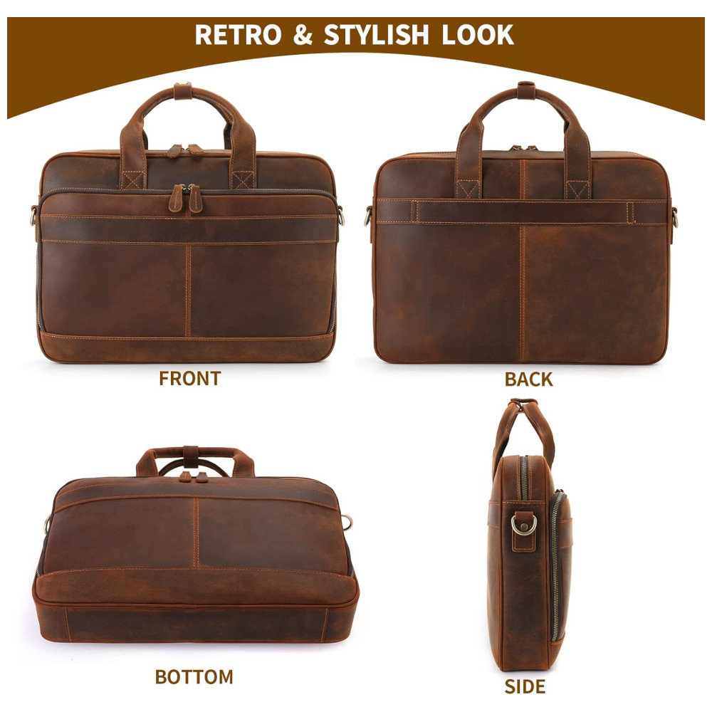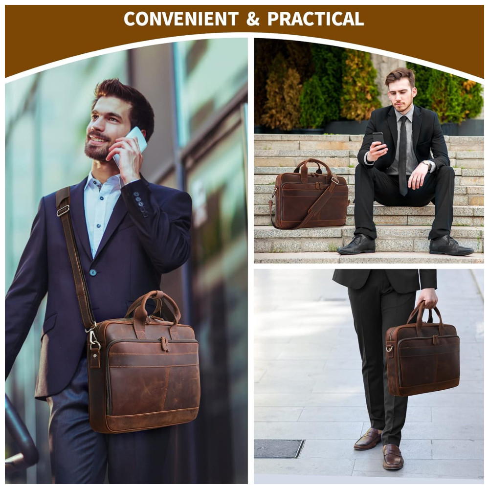 Presente perfeito este é um uso polivalente e uma pasta de couro de aparência aflita elegante que nunca sai de moda. Esta bolsa de couro para laptop para homens é um ótimo presente de couro para homens como Dia dos Pais, Aniversários dos Homens, Dia dos Namorados, Dia de Natal, Graduação, de volta à faculdade ou em qualquer ocasião. Grande presente homens para profissionais, artistas, estudantes, negócios e todos os tipos de funcionários. A bolsa pode ser usada como bolsa de ombro para homem, bolsa mensageiro