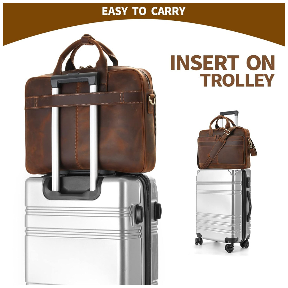 Material Maleta masculina em couro de grão de vaca de alta qualidade. Carteiras de couro feitas à mão para homens em técnicas tradicionais. Maleta de homem resistente com alças superiores, alças de ombro. ajustáveis aprox 85 a .
