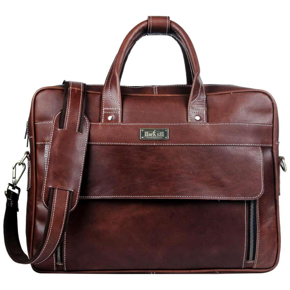 Bolsa Pasta de Couro Masculina para Laptop HULSH Marrom
