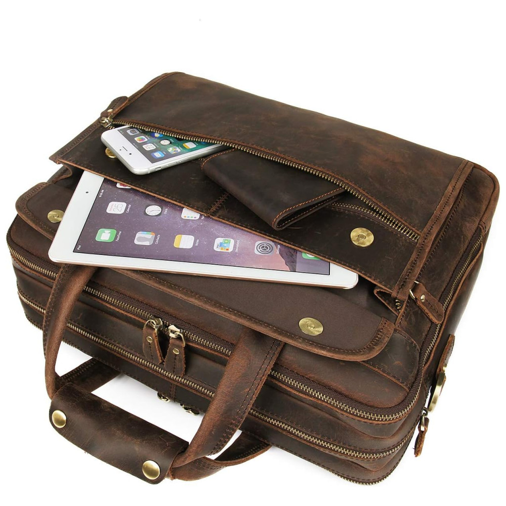 Dimensão x x , 15,5 polegadas x 5 polegadas x 12 polegadas Peso líquido 1,69 kg , 3,73 lbs Embalagem a pasta vem primorosamente embrulhada em uma sacola de pano com a marca Augus estampada, um lindo presente para seu pai, seu namorado e seu amante.