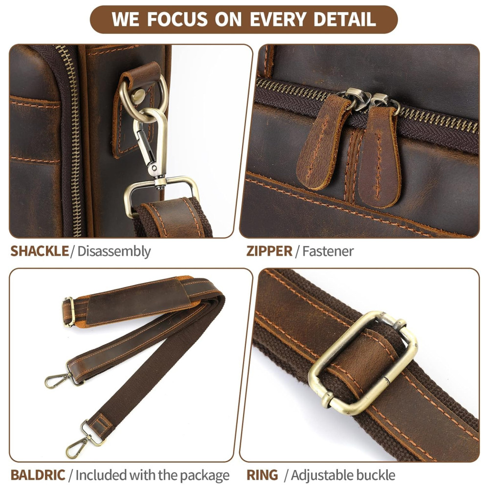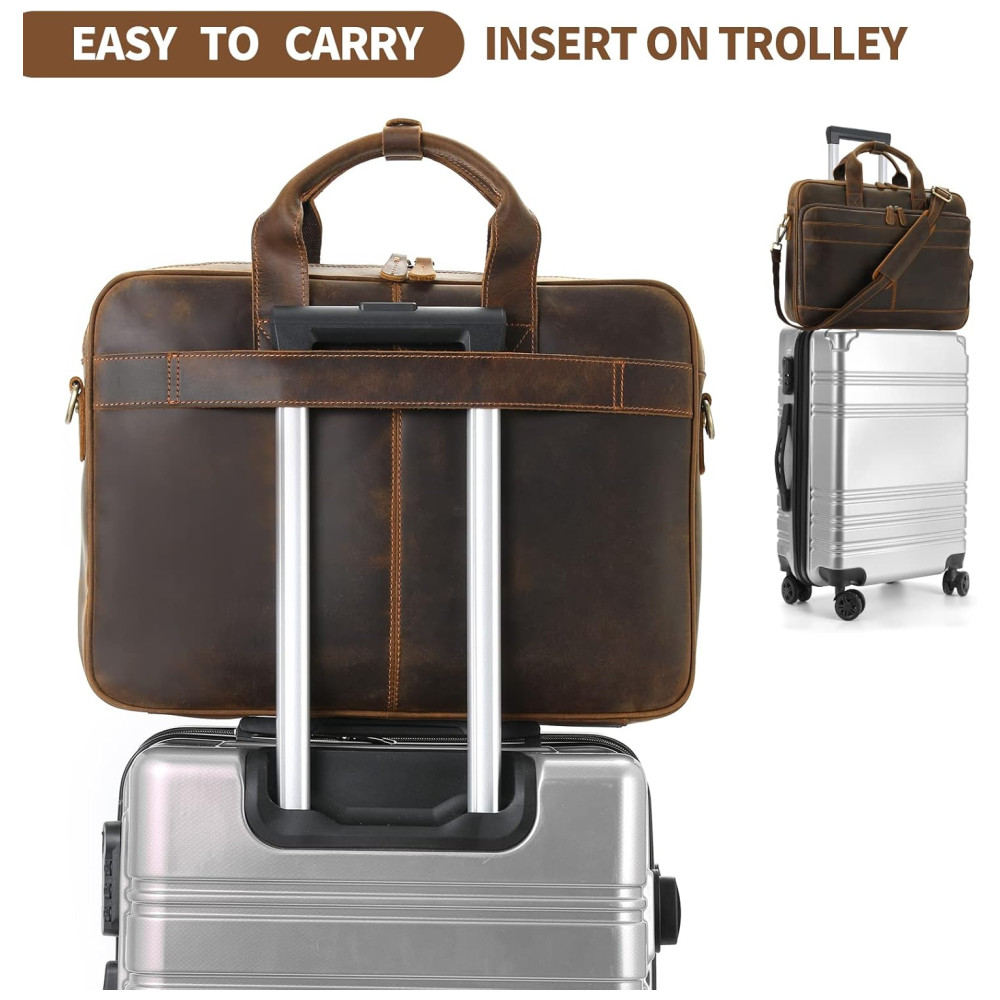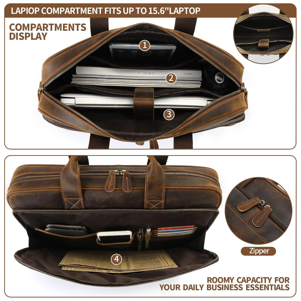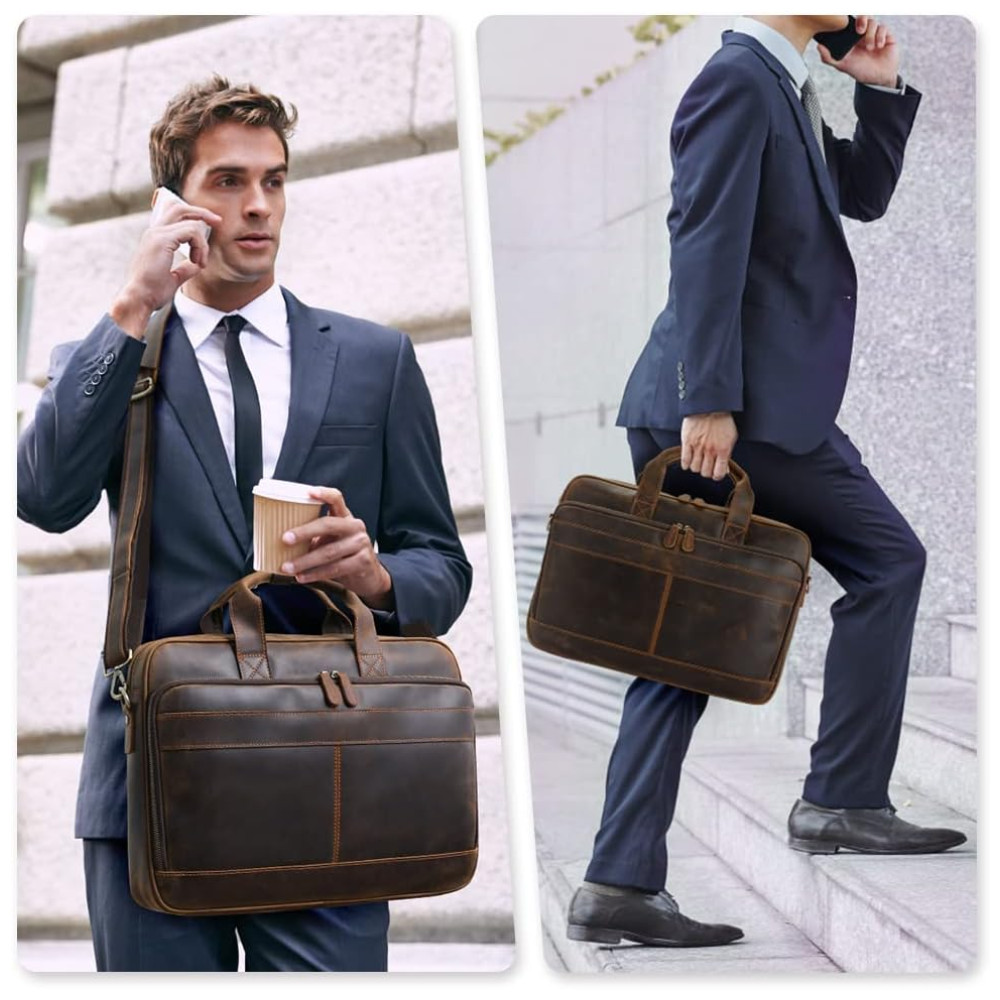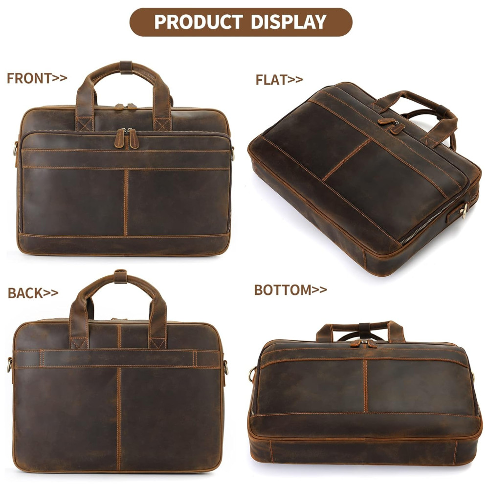 Presente perfeito este é um uso polivalente e uma pasta de couro de aparência aflita elegante que nunca sai de moda. Esta bolsa de couro para laptop para homens é um ótimo presente de couro para homens como Dia dos Pais, Aniversários dos Homens, Dia dos Namorados, Dia de Natal, Graduação, de volta à faculdade ou em qualquer ocasião. Grande presente para profissionais, artistas, estudantes, homens de negócios e todos os tipos de funcionários. A bolsa pode ser usada como bolsa de ombro para homem, bolsa mensageiro