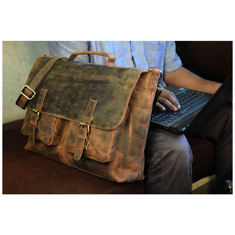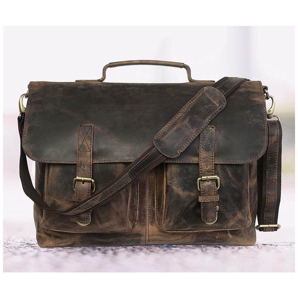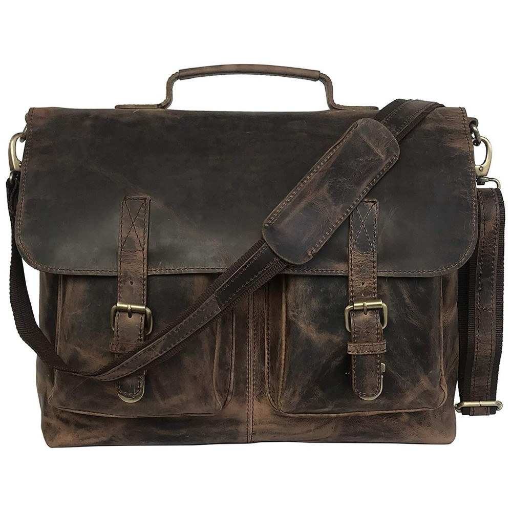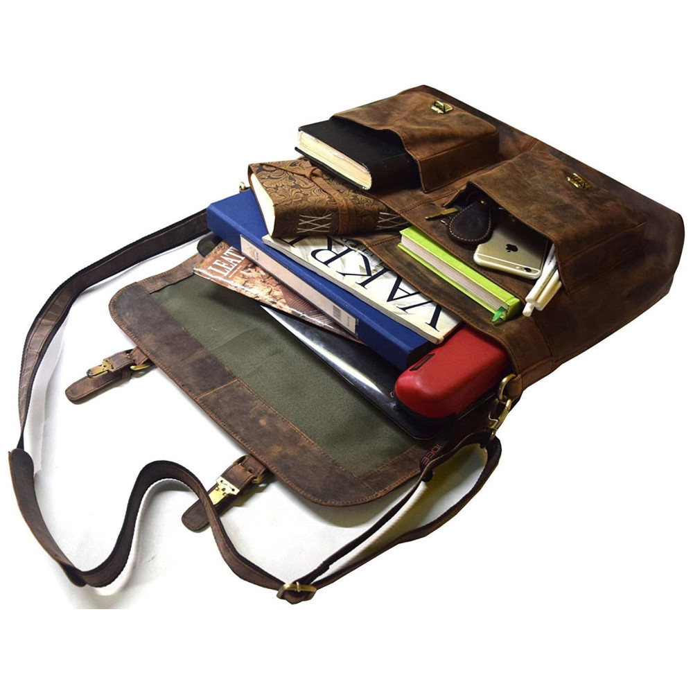 Feita com o couro de búfalo 100 de melhor couro da Hunter e forrada com lona alta, esta bolsa é mão por arte que são feitas com qualidade há décadas