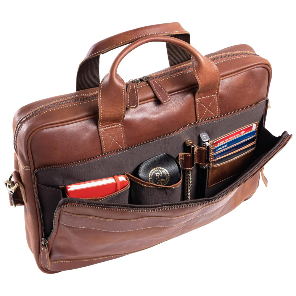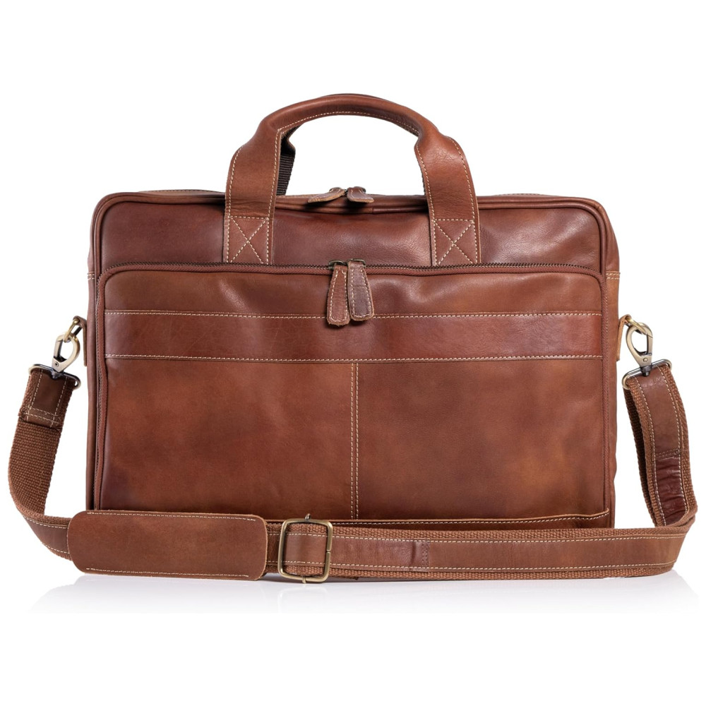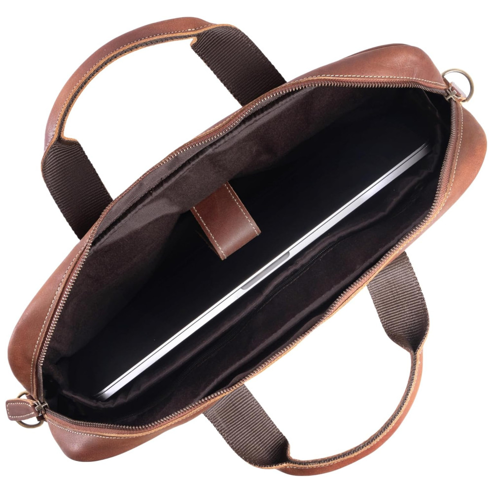 Bolsa Pasta de Couro para Laptop Unissex KOMALC Marrom