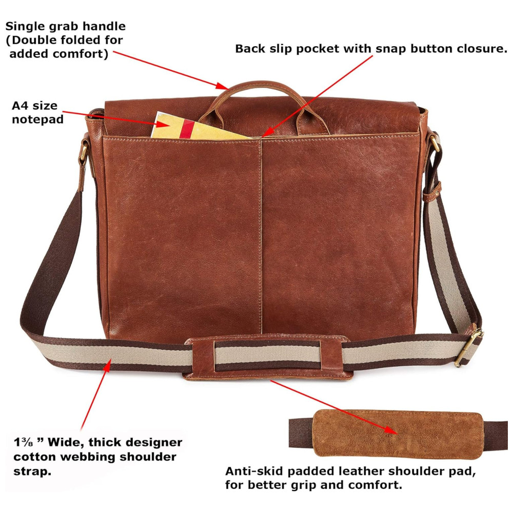 COURO REAL Esta bolsa é feita na ÍNDIA em couro de vaca 100 real. É muito superior a mais alta qualidade de couro disponível, e foi feita para durar PARA TODA A VIDA. O Couro é envelhecido e envelhecido, com ceras e óleos para dar um visual vintage atemporal. Uma vez que é feito de couro de grão superior manchas, padrões de couro naturais, marcas de velocidade, podem ocorrer grandes na pele, ou como características cruas e reais de um produto real.