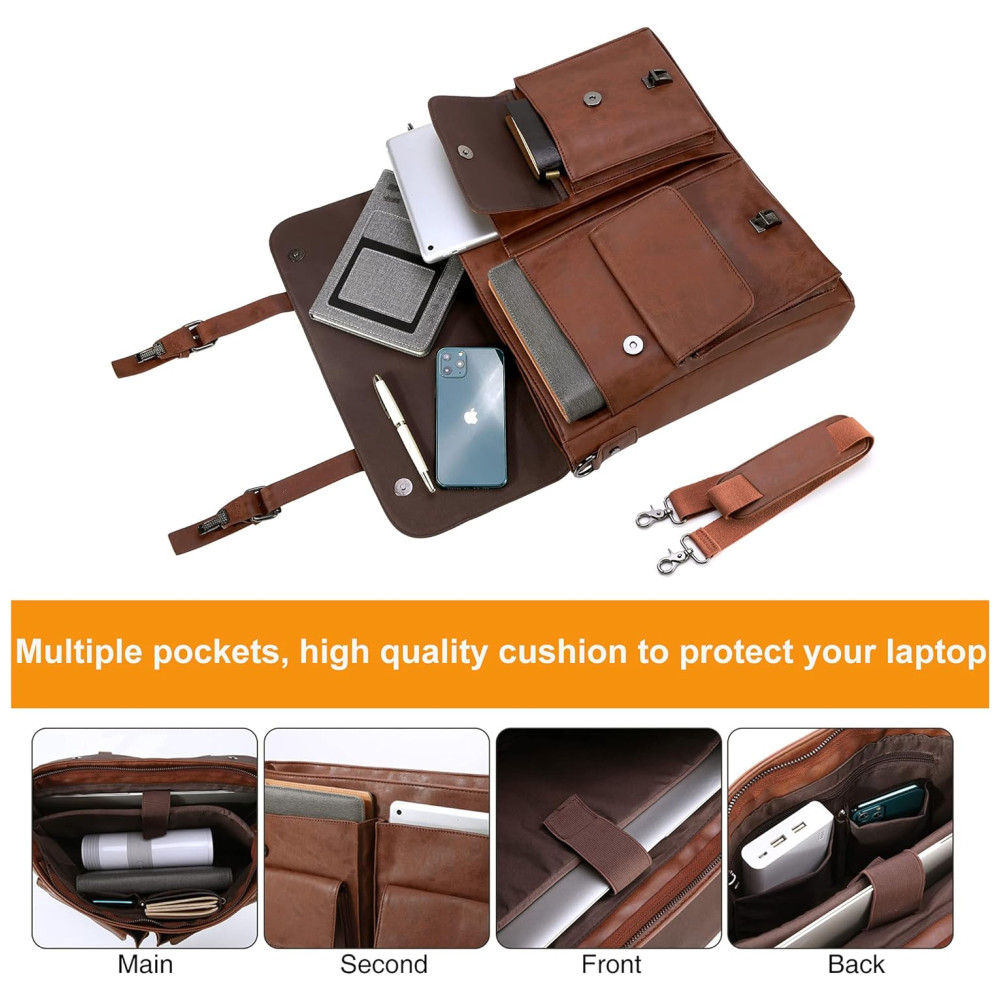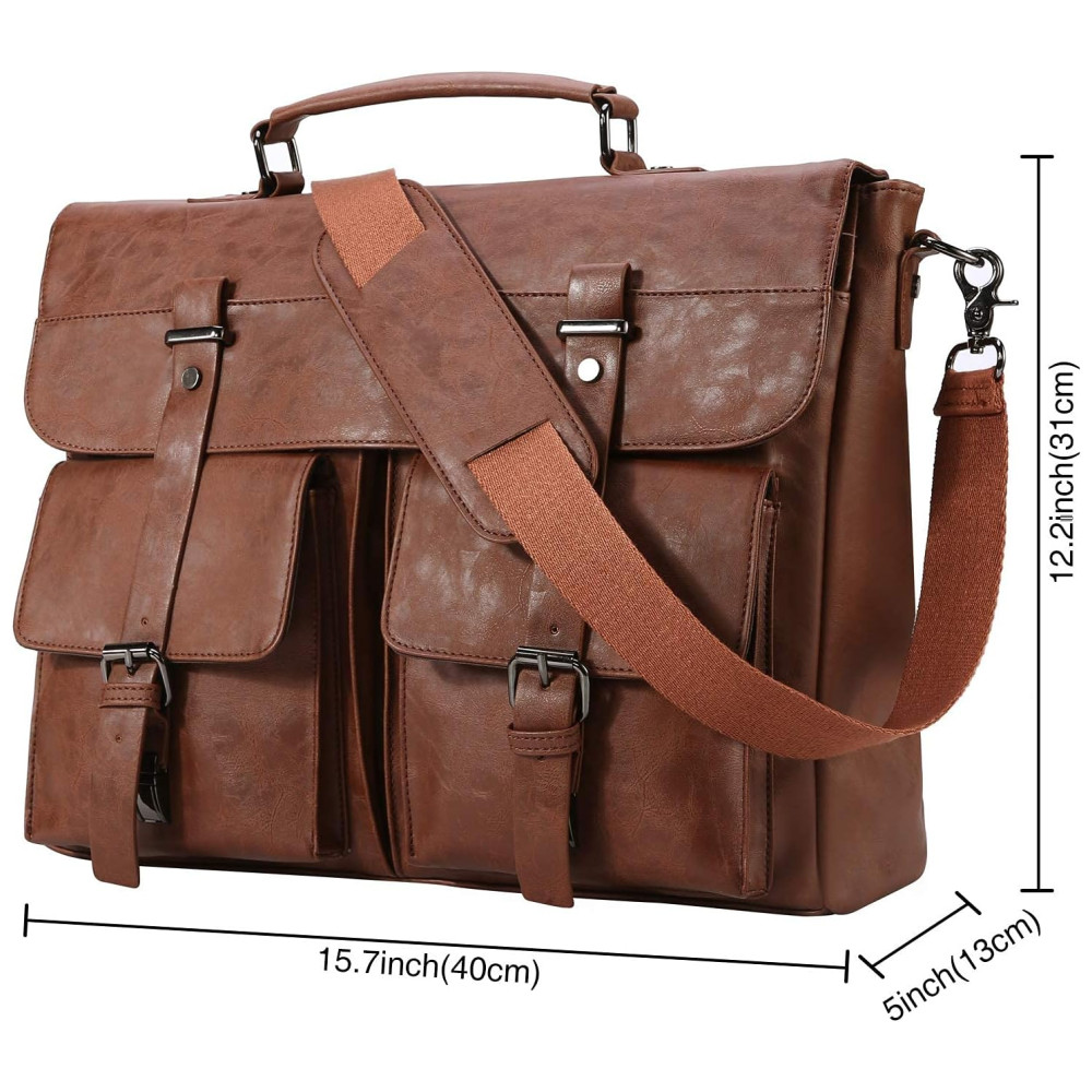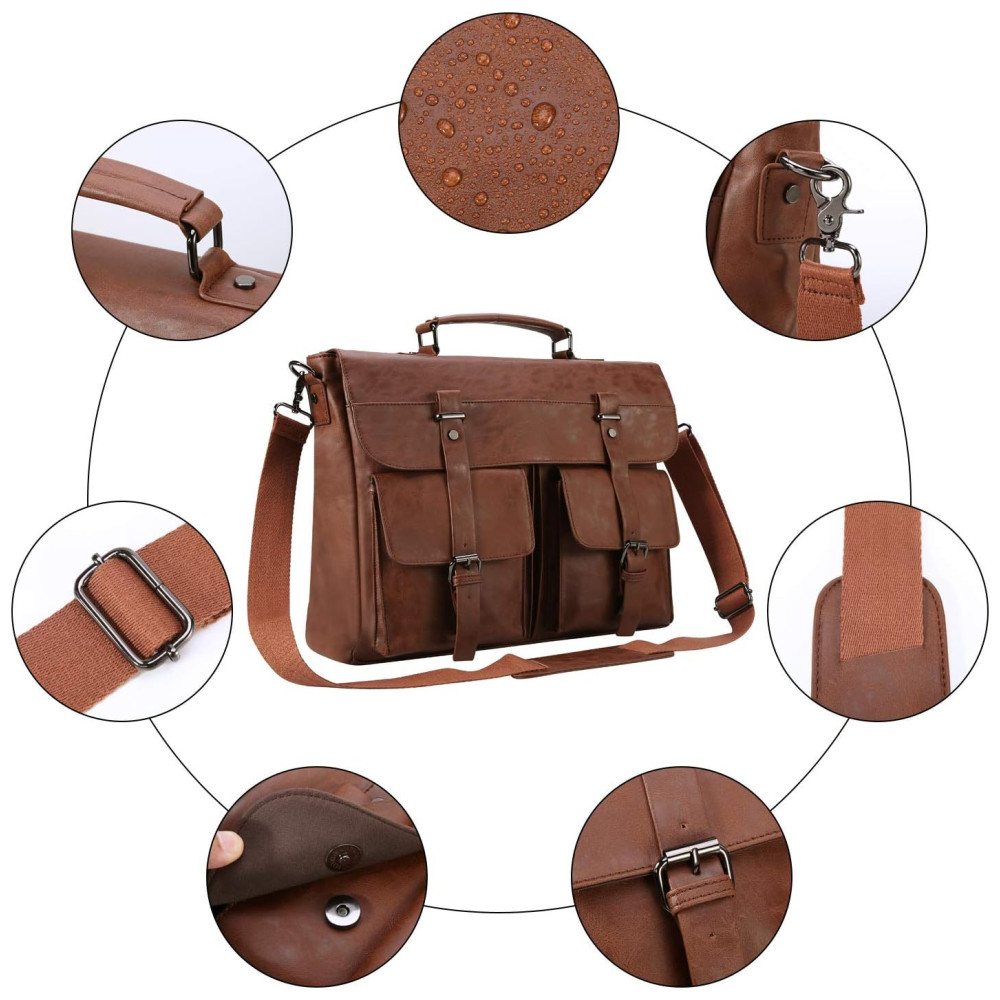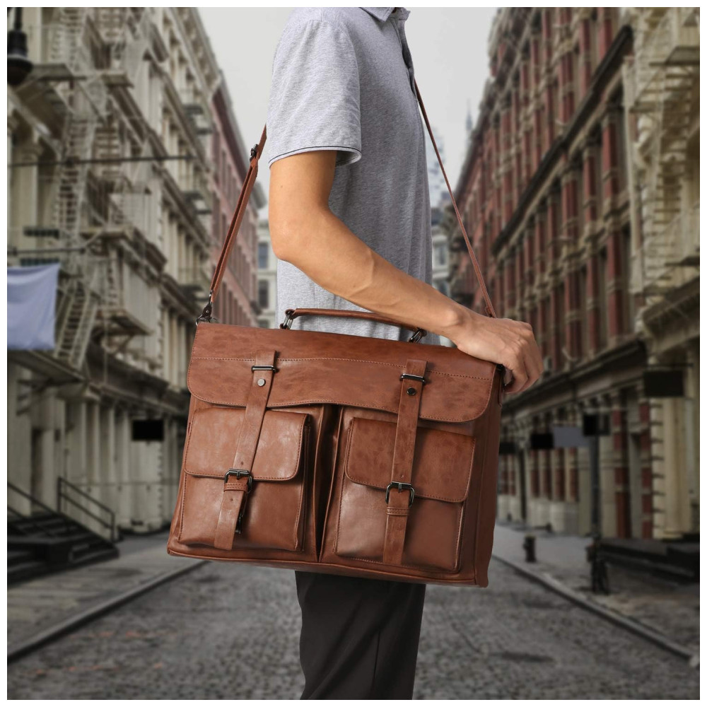Bolsa Pasta de Couro para Laptop Vintage SEYFOCNIA Marrom
