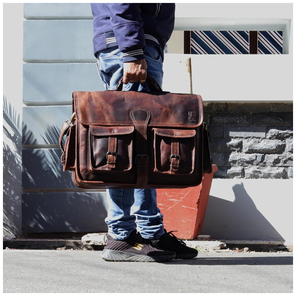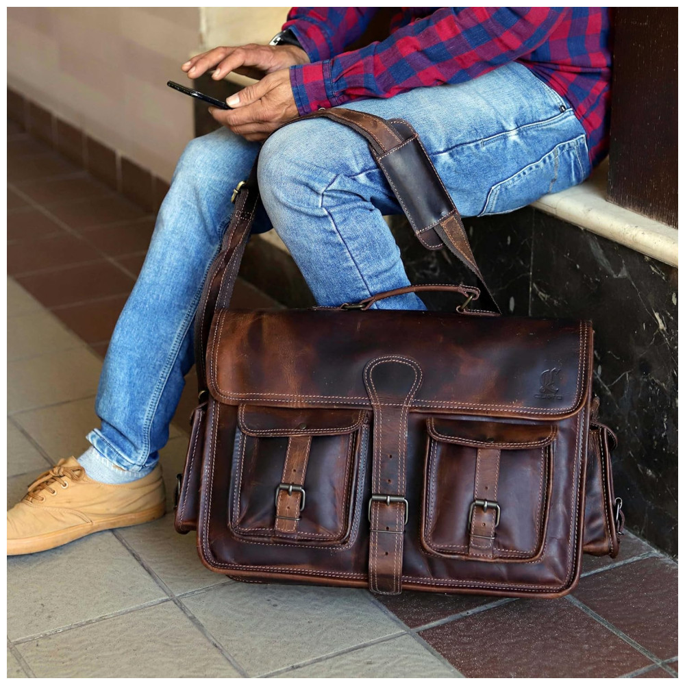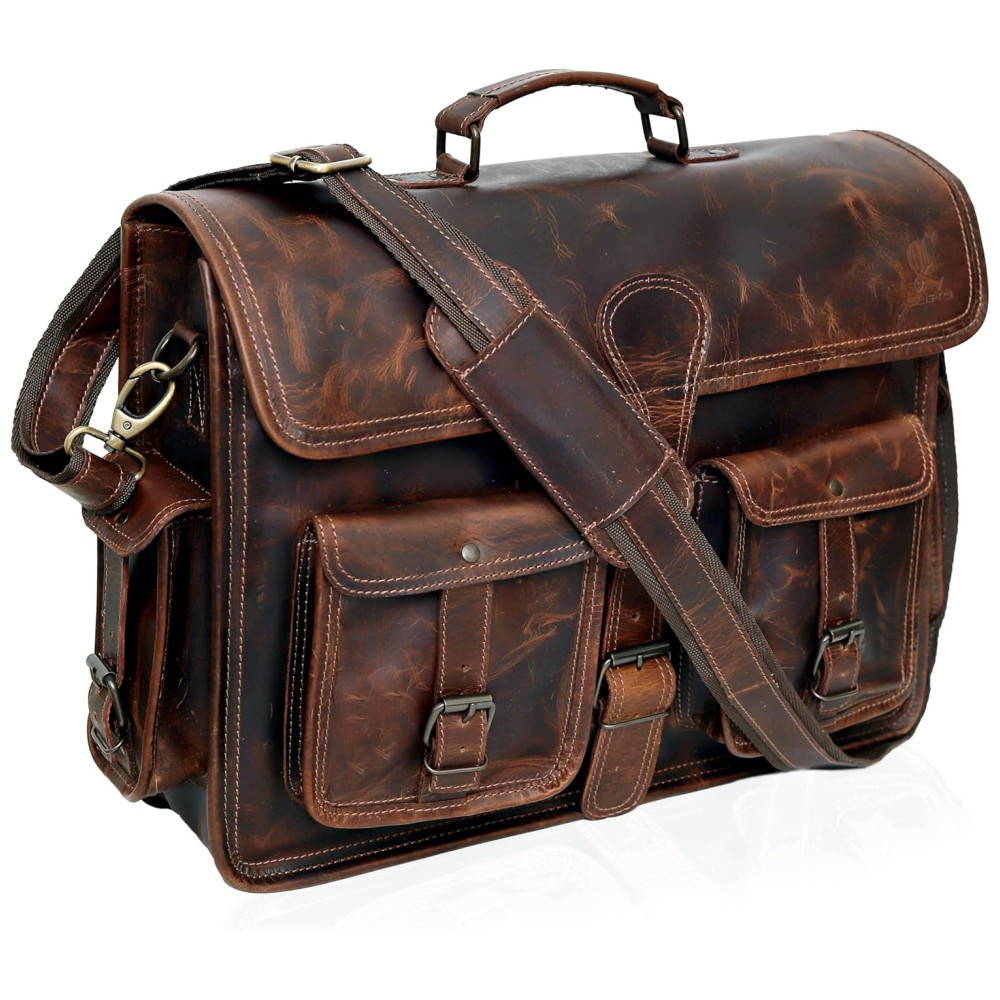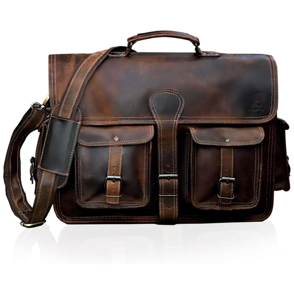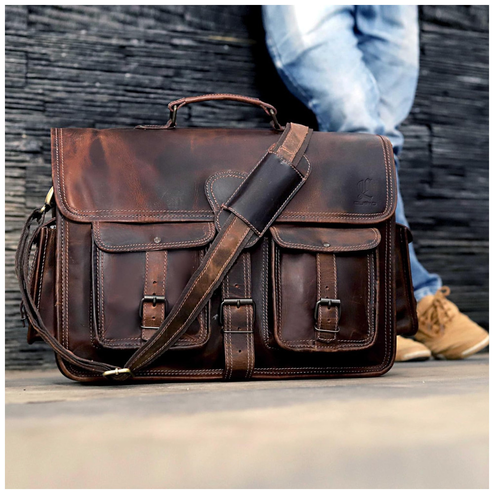Bolsa Pasta de Couro Vintage para Laptop CUERO Marrom