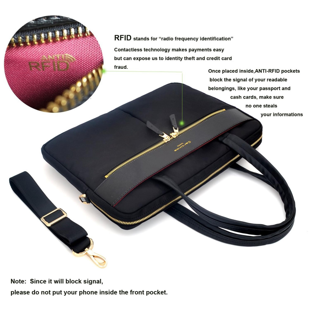 Tamanho 14,9 10 1,2 polegadas 37,9 25,6 3,, Devido ao design ultrafino, se o tamanho do laptop atingir 14,9 10 1,2 polegadas 37,9 25,6 3,, a bolsa ficará lotada Pequena caixa de blindagem de sinal RFID RFID significa identificação por radiofreqência A tecnologia de contato torna os pagamentos fáceis, mas pode nos expor a roubo de identidade e fraude de cartão de crédito Uma vez colocado dentro dos bolsos ANTI RFID bloqueia o sinal de seus pertences legíveis, como o seu passaporte e cashcards, para garantir que ninguém rouba a sua informação. Lembre se de não colocar o telefone dentro do bolso, pois também bloqueará o sinal. Nylon com Meterial Resistente à Água Tecido de nylon sedoso, luxuosamente suave. materiais de proteção maciças, proteger o seu laptop perfeitamente Multi embolsado todas as suas coisas, telefone, carteira, laptop, mouse, adaptador de energia e ect, dispostas em perfeita ordem.Pega supressível, tira desmontável, facilmente mudar em uma luva COMPATÍVEL COM O USO Compatível com a maioria dos 14 1 Laptops de 5,4 polegadas, notebooks, ultrabooks, netbooks como o MacBook Pro com Touch Bar 15 polegadas MLH32LL , A, o ASUS VivoBook F441, o VivoBook S S510 , , o VivoBook 15 X510UQ, o Acer Aspire 1 um A114 31 C4HH, o Acer Chromebook 14 NX.GC2AA.005, Dell XPS 15 9560, 2018 Dell Inspiron 15 7000, Série Inspiron 14, Latitude E7440 14.1 , 2018 HP Envy X360 2 15.6, Le Yoga 710.720, 730, 320 15, ThinkPad E580, etc
