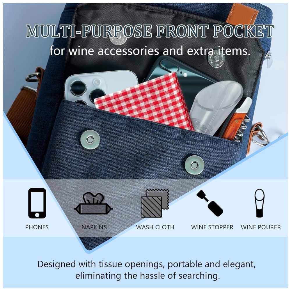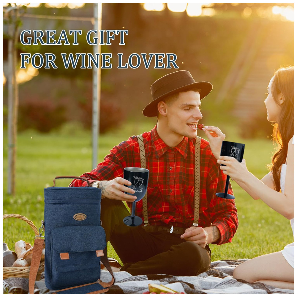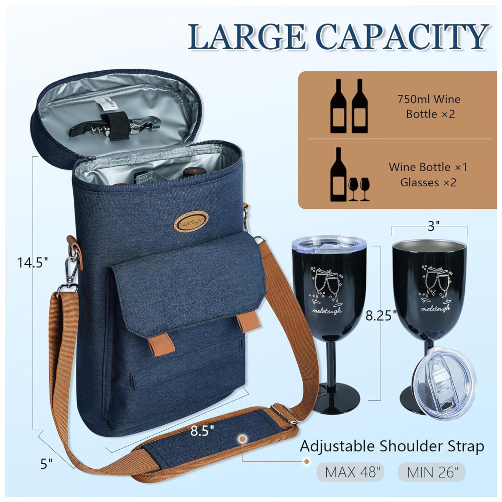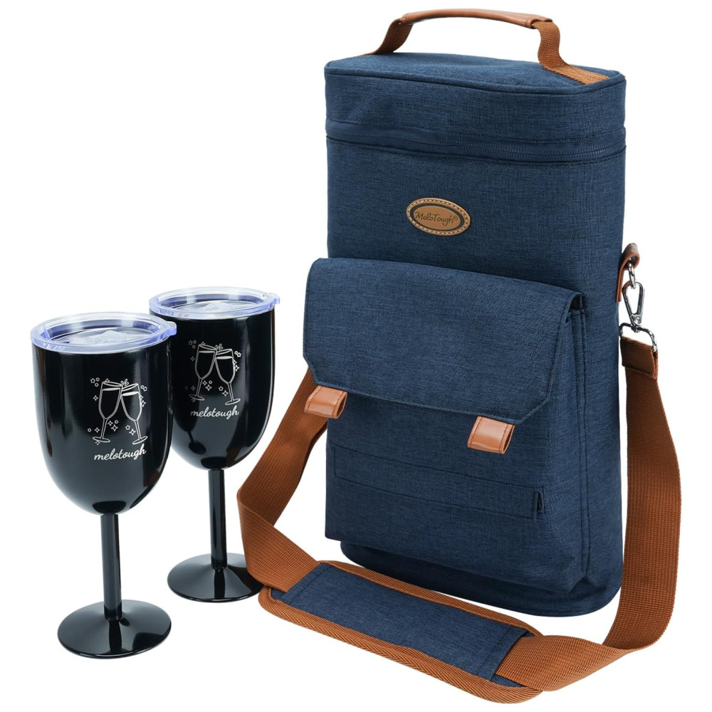 Bolsa Térmica MELOTOUGH para 2 Garrafas de Vinho com 2 Copos de Aço Inoxidável – Azul