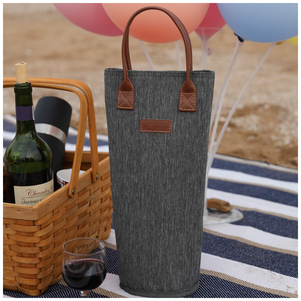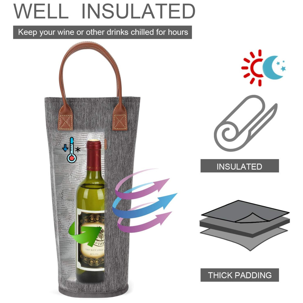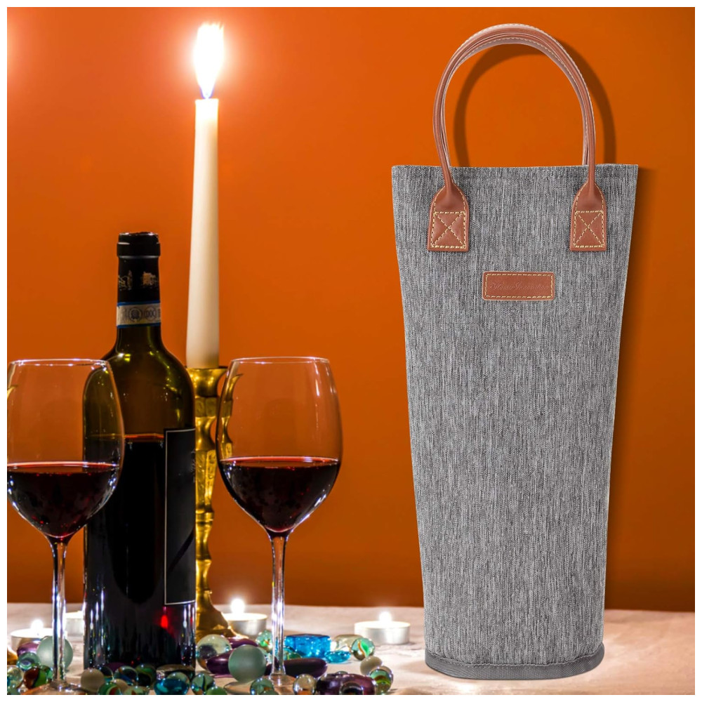 Bolsa Térmica para 1 Garrafa de Vinho Porta-Garrafas de Vinho Acolchoado Perfeito para Amantes de Vinho ou Presente de Casamento – Cinza