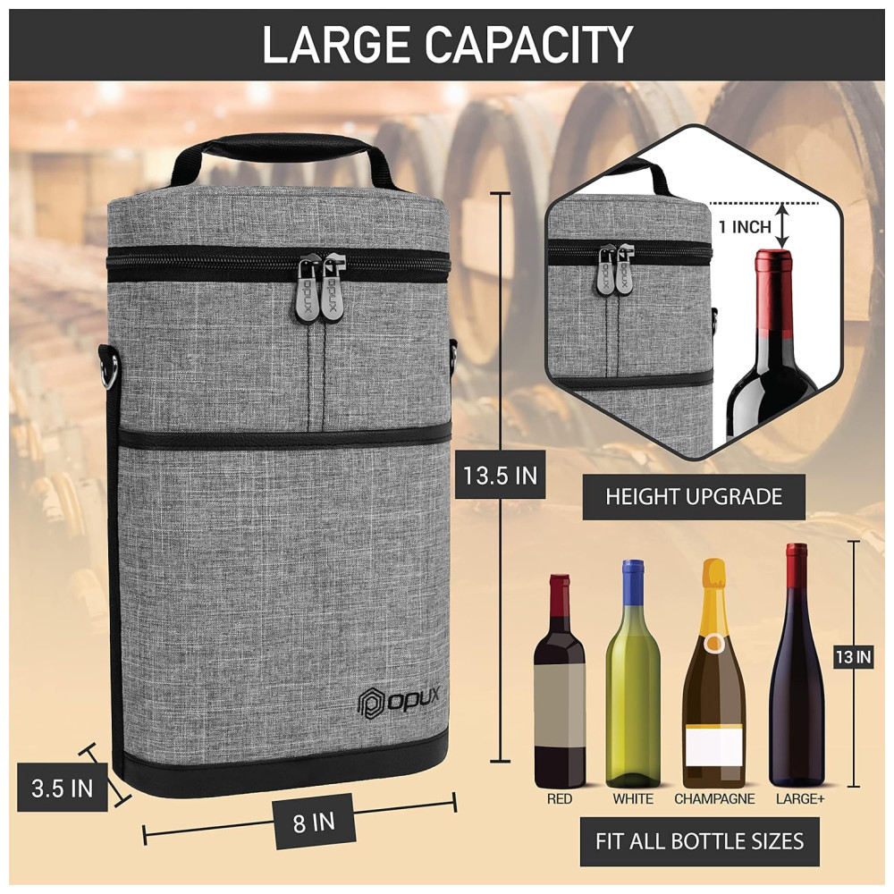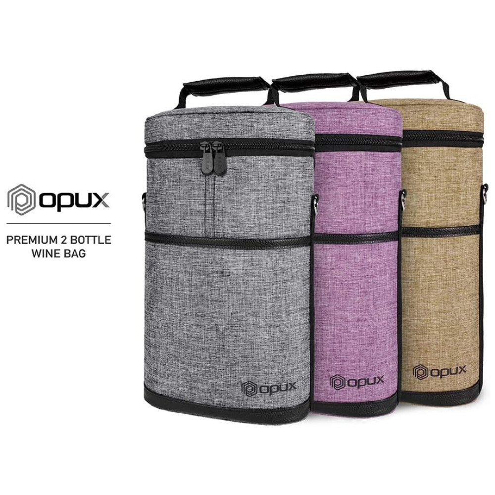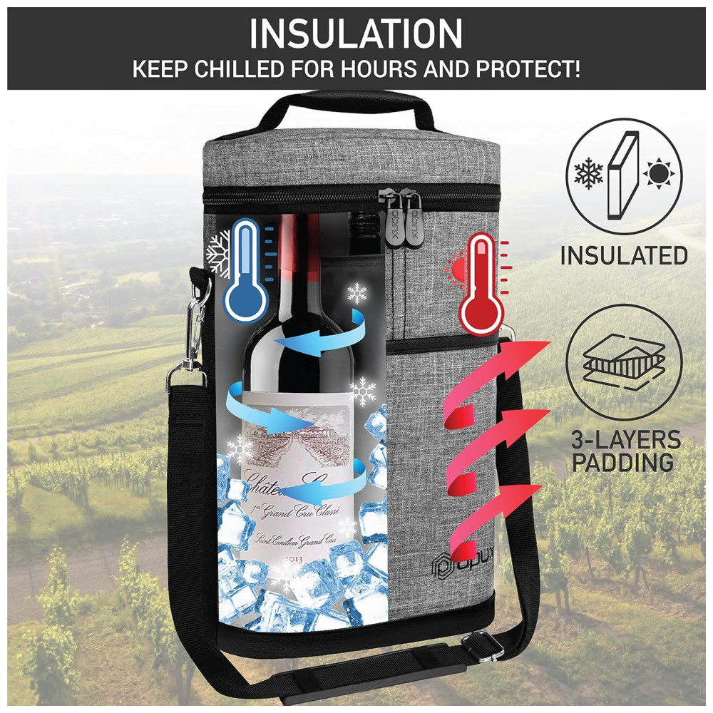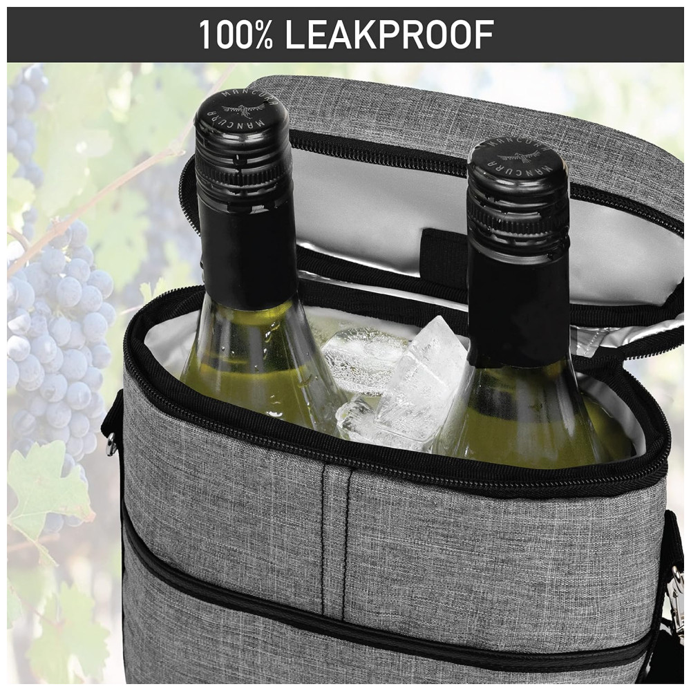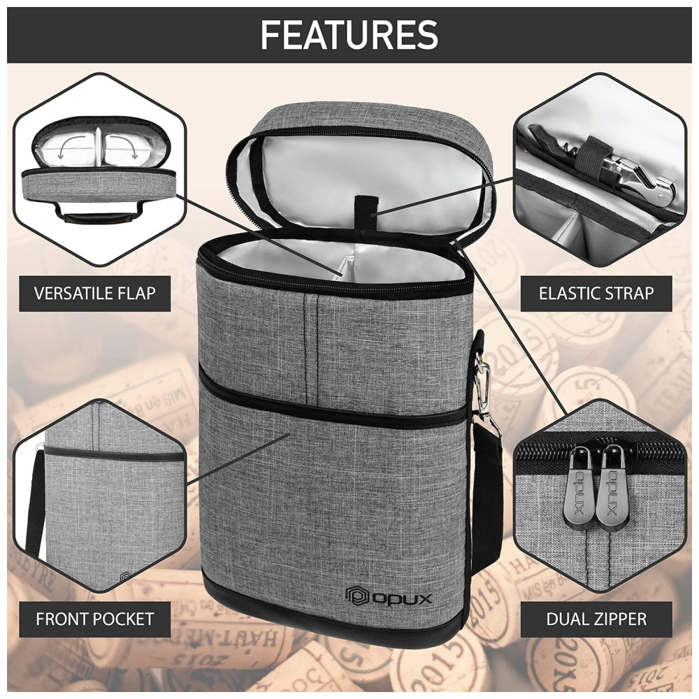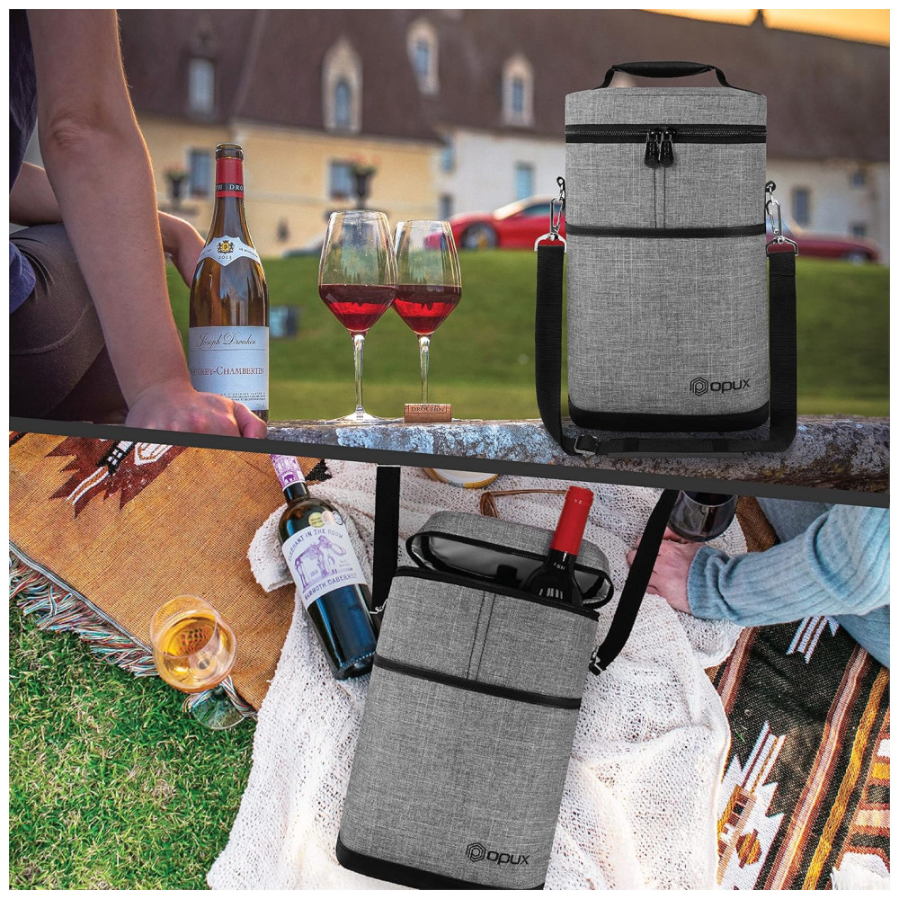 Bolsa Térmica para 2 Garrafas de Vinho OPUX Ideal para Viagens Piqueniques e Presente para Amantes de Vinho – Cinza Mescla