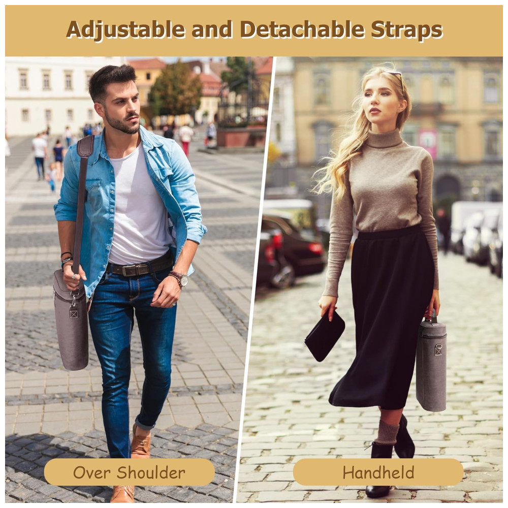 A Bolsa Térmica para 2 Garrafas de Vinho da Tirrinia é o acessório perfeito para os amantes de vinho que gostam de levar suas garrafas favoritas para onde forem. Seja para um restaurante , festa na casa de amigos, degustações de vinho ou piqueniques no parque, esta bolsa térmica manterá seu vinho gelado e pronto para ser apreciado. Seu design elegante a torna um presente atencioso e estiloso para amigos, família e colegas em ocasiões especiais como aniversários, casamentos, Natal e Ação de Graças. Ideal para presentear tanto mulheres quanto homens. TRANSPORTE PRÁTICO Equipada com uma alça resistente e alça de ombro ajustável, esta bolsa para vinho facilita o transporte do seu vinho para qualquer lugar, de eventos ao ar livre a jantares casuais. Seu amplo interior comporta duas garrafas, sendo perfeita para viagens ou festas. Compacta quando dobrada, é um dos presentes mais úteis para anfitriãs. PROTEJA SEU VINHO O divisor acolchoado interior desta bolsa mantém suas garrafas seguras e evita que se choquem, permitindo também seu uso como refrigerador de vinho ou bolsa térmica para água e outras bebidas. Seja em um cruzeiro, viagem à praia ou apenas se locomovendo, este porta-garrafas manterá suas bebidas seguras. TÉRMICA À PROVA DE VAZAMENTOS O revestimento à prova de vazamentos garante que não ocorram derramamentos, e o isolamento térmico mantém seu vinho gelado por horas. Com isolamento em poliuretano e acolchoamento de espuma PE de 5mm, este porta-garrafas protege duas garrafas de impactos externos, sendo um presente ideal para adultos ou amigo oculto. DESIGN ELEGANTE E DURÁVEL Feita com poliéster 600D de alta qualidade, esta bolsa térmica para vinho é durável e elegante, com um design de alça azul e branca chique. É a combinação perfeita de funcionalidade e moda, seja ao presentear ou para elevar sua própria experiência de transporte de vinho. Esqueça as sacolas de presente de vinho frágeis e escolha esta bolsa para um visual mais sofisticado!