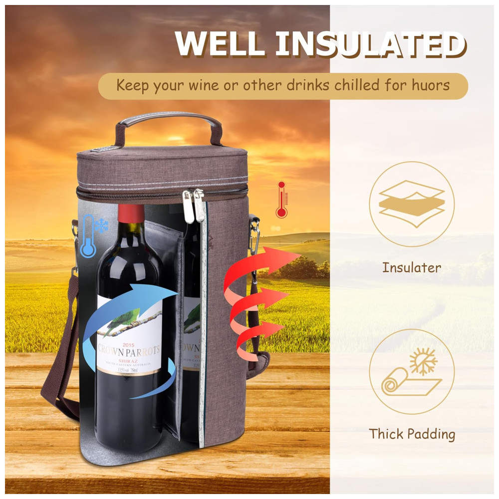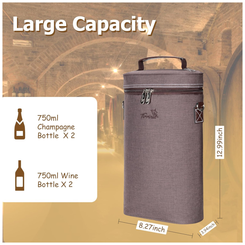 Bolsa Térmica para 2 Garrafas de Vinho Tirrinia – Marrom: Presente Ideal para Amantes de Vinho
