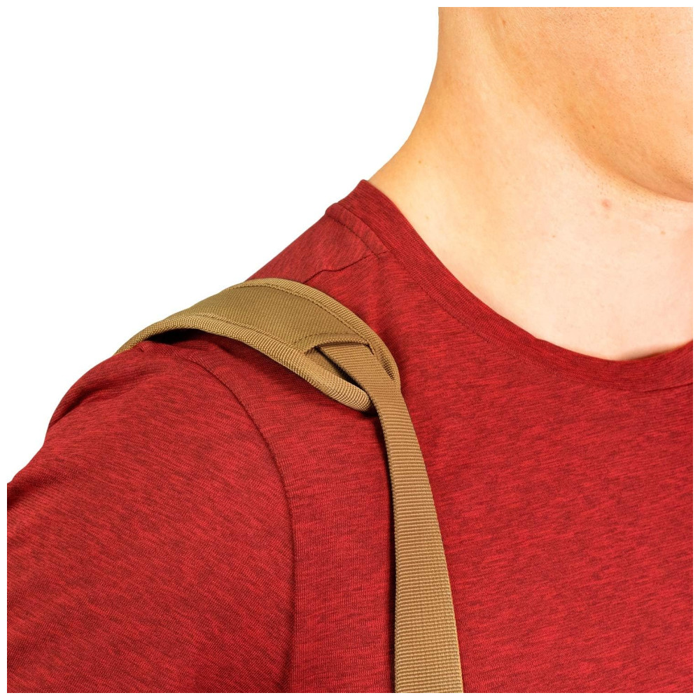 Correias de fixação e correias Molle de especificação militar Os porta garrafas de água MOLLE de imitação de baixa qualidade usam correias de fixação MOLLE não padrão, não compatíveis, não testadas que não são projetadas para uso em campo de alta tensão e suporte de carga. A bolsa para garrafa de água Exo Tek H2O usa correias reforçadas com especificação MOLLE, PALS e tiras de fixação para que seus equipamentos e acessórios fiquem s no campo e sejam compatíveis com qualquer outro equipamento MOLLE