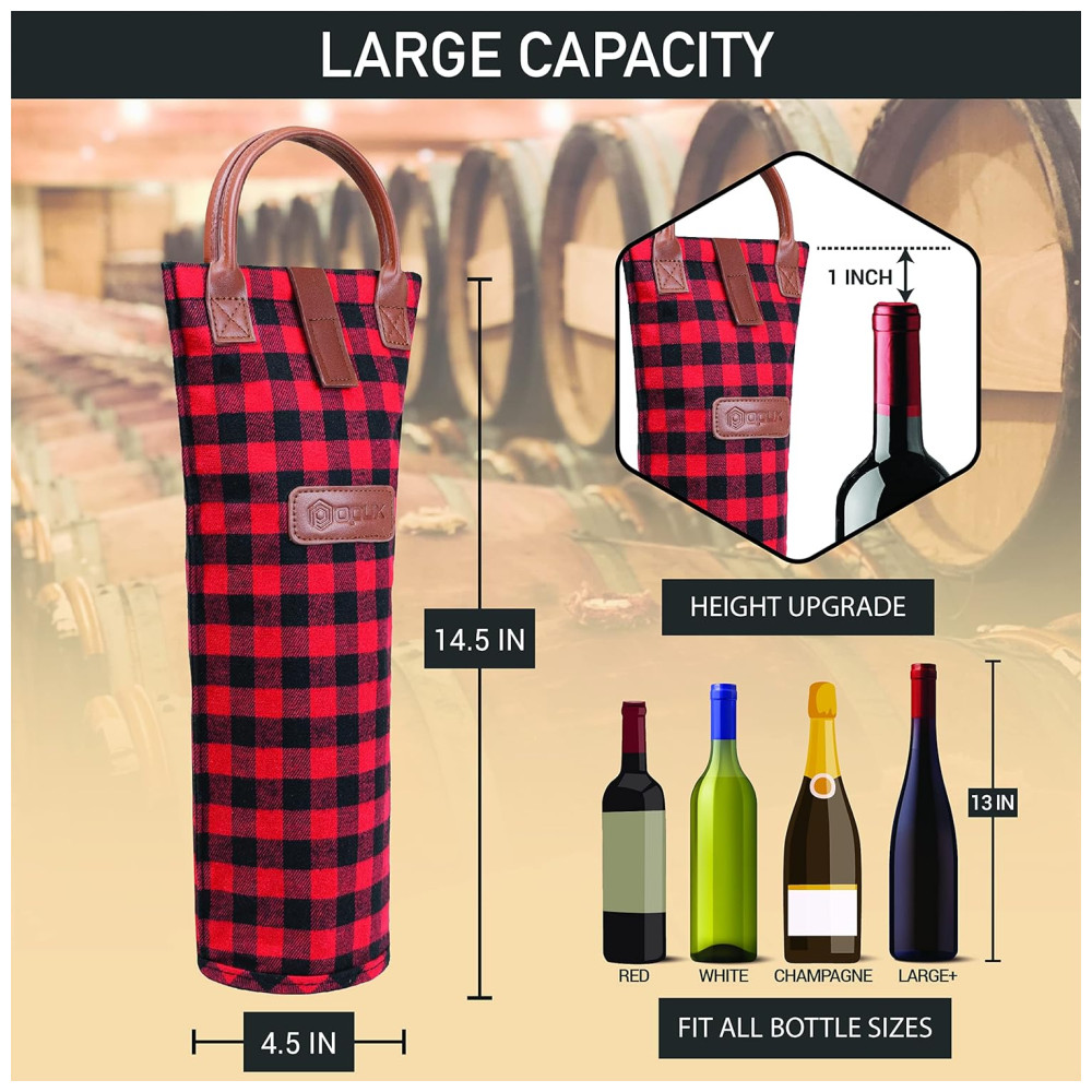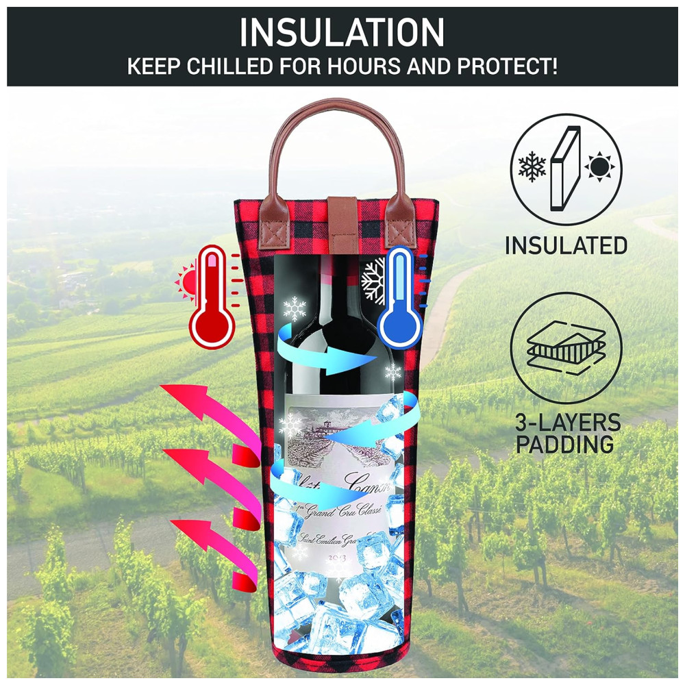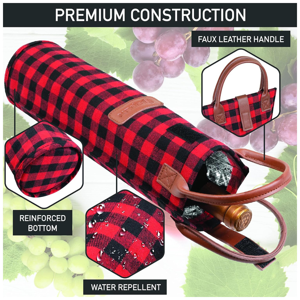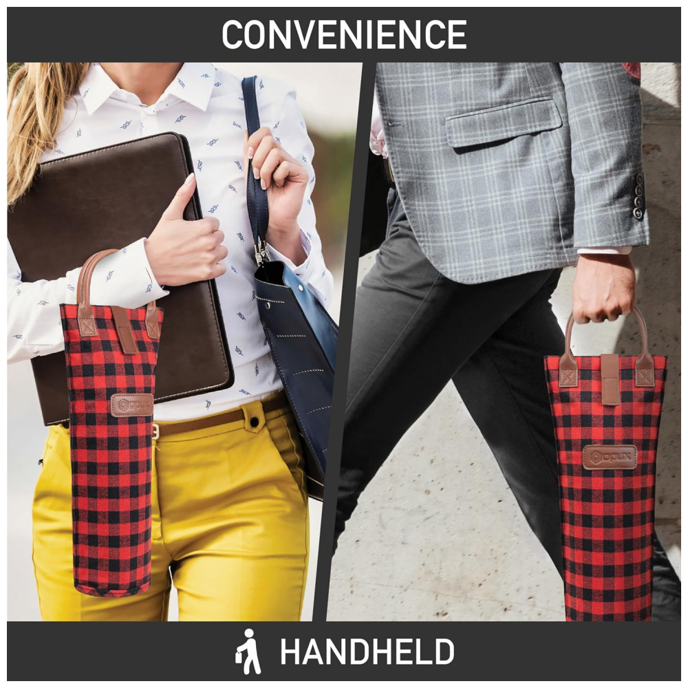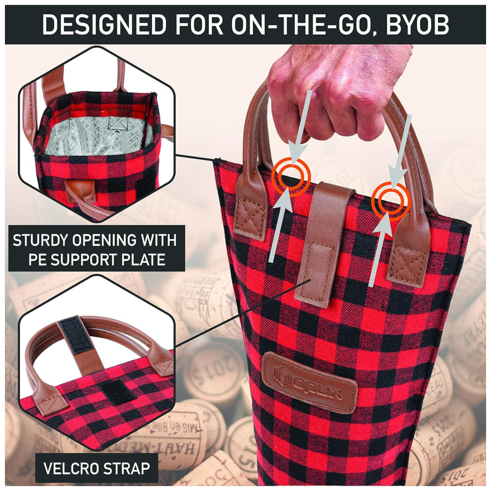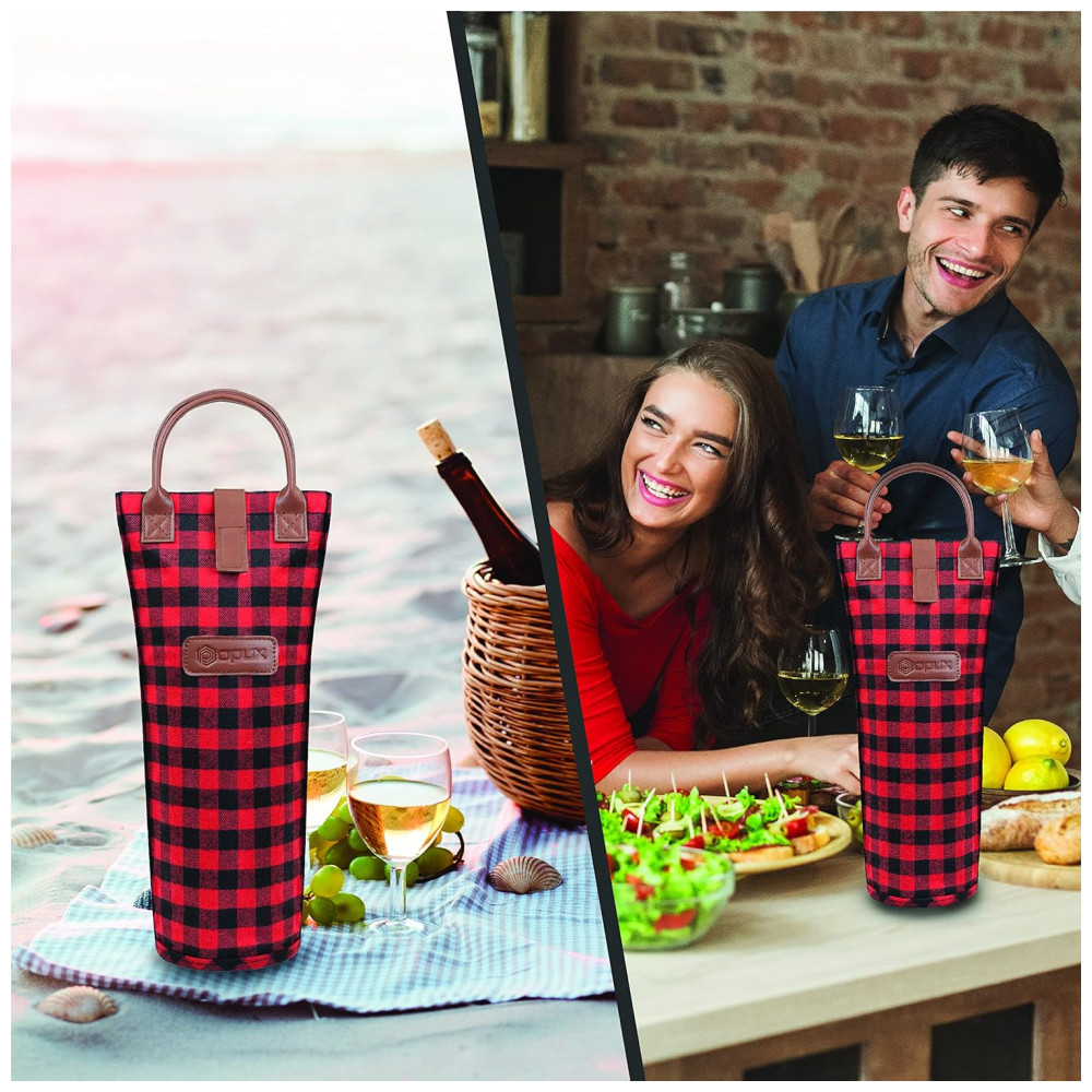 Bolsa Térmica para Garrafa de Vinho OPUX – Ideal para Picnics e Presentes – Revestimento Isolante – Design Elegante Xadrez Vermelho