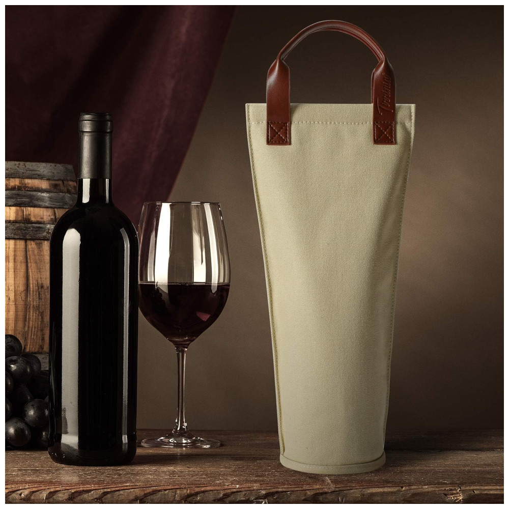 Bolsa Térmica para Garrafa de Vinho Tirrinia Bege em Lona Design Elegante para Viagens Piqueniques e Presentes