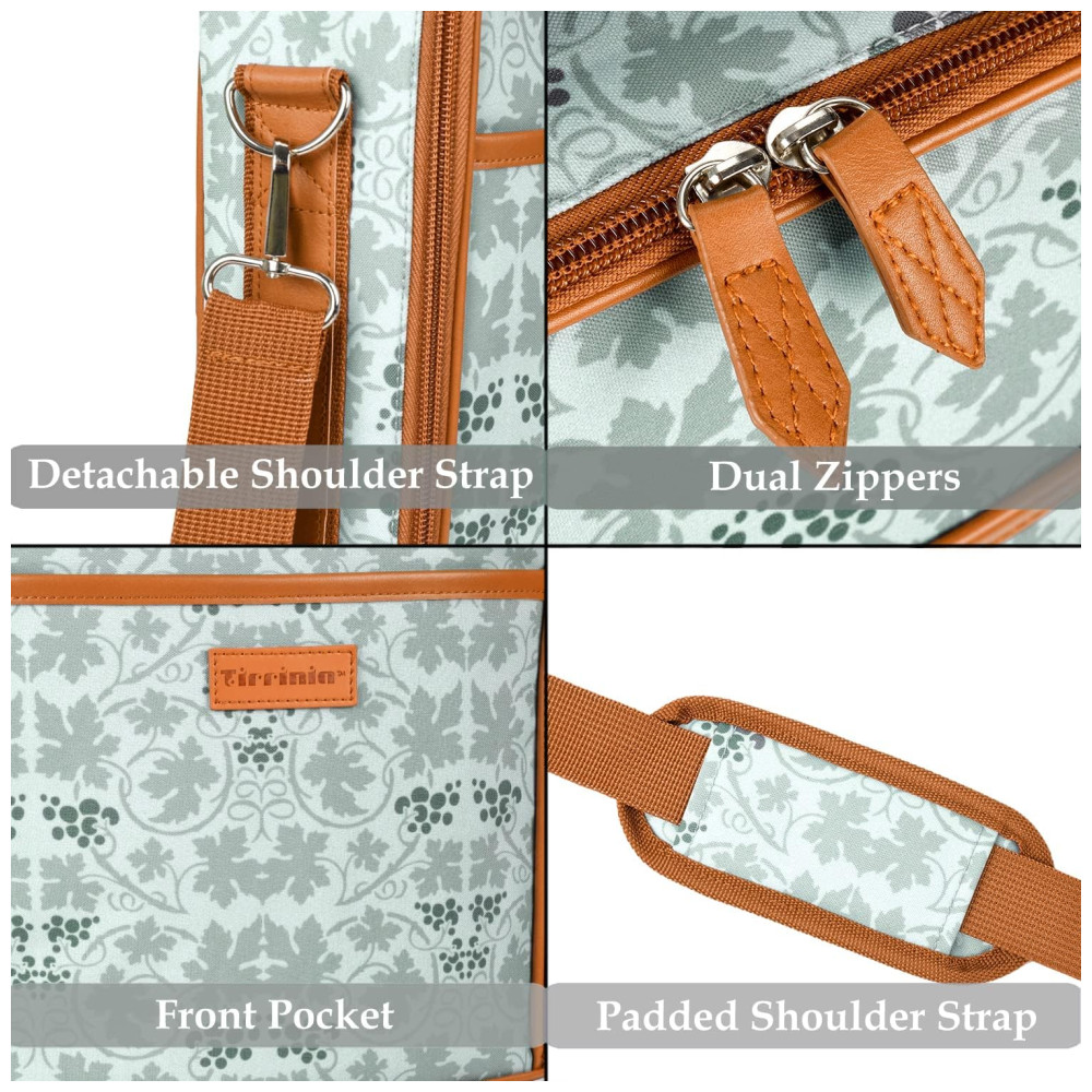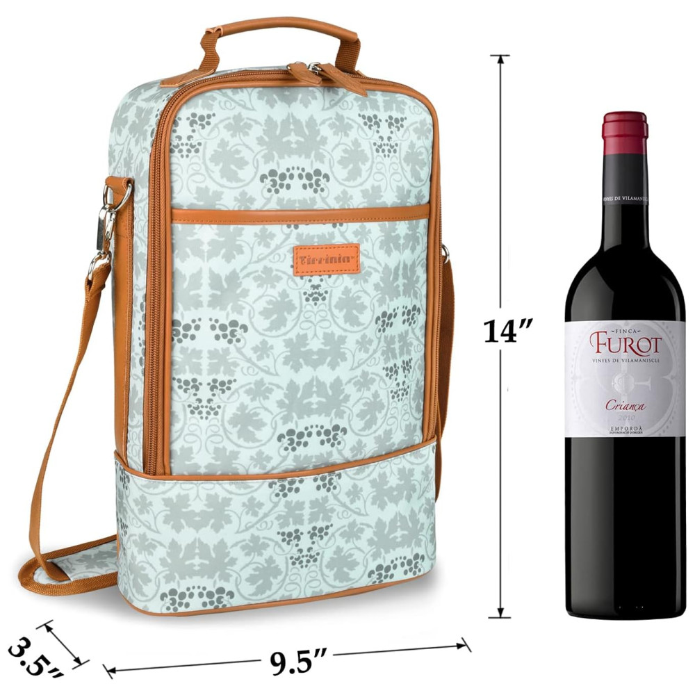 DESIGN ON THE GO Alça resistente e alça de ombro ajustável com fivela de aço inoxidável deste porta vinhos ajudam você a transportar seu vinho para qualquer lugar. Esta sacola de transporte de vinho tem amplo espaço para 2 garrafas de vinho de tamanho normal 20 x 12 x . Também pode ser dobrada e embalada facilmente.