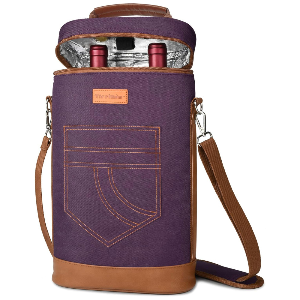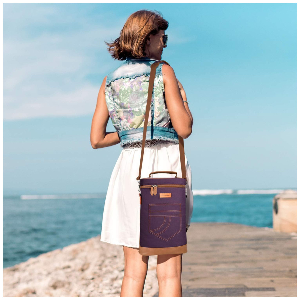 Bolsa Térmica Para Transporte de Vinhos até 2 Garrafas com Alça Ajustável Roxa TIRRINIA Violeta