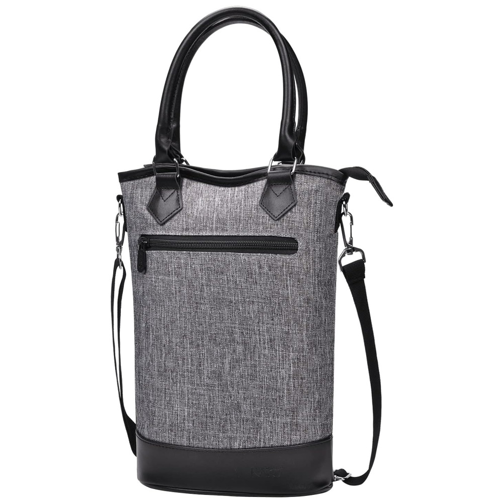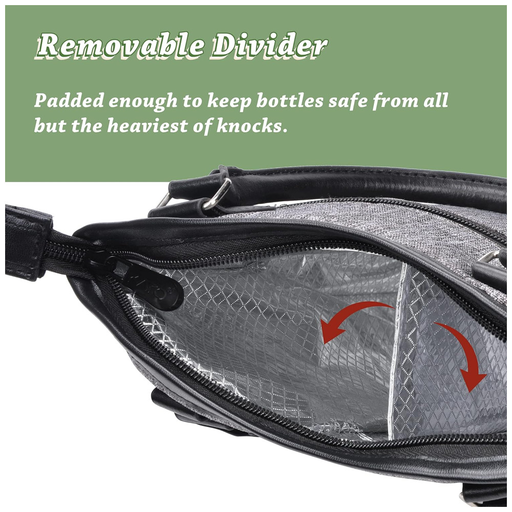 DESIGN ON THE GO Alças de couro bem feitas e alça de ombro ajustável com fivela de aço inoxidável desta bolsa de vinho ajudam você a transportar seu vinho para qualquer lugar. esta sacola de transporte de vinho tem amplo espaço para 2 garrafas de vinho ou champanhe 20 x 12 x . O bolso frontal com zíper durável facilita o zenamento de pequenas coisas, como toalha de papel ou vinho abridores.Também pode ser dobrado e embalado facilmente.
