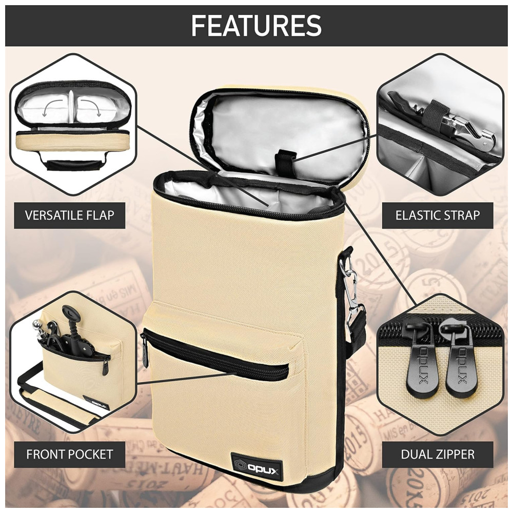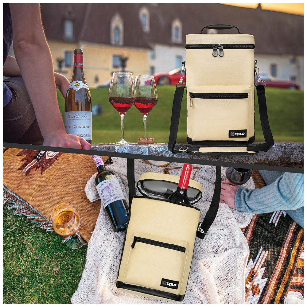 Bolsa Térmica Para Transporte de Vinhos até 2 Garrafas OPUX Creme